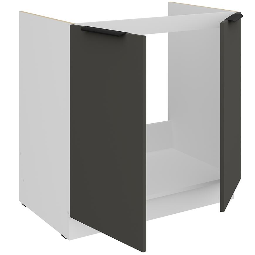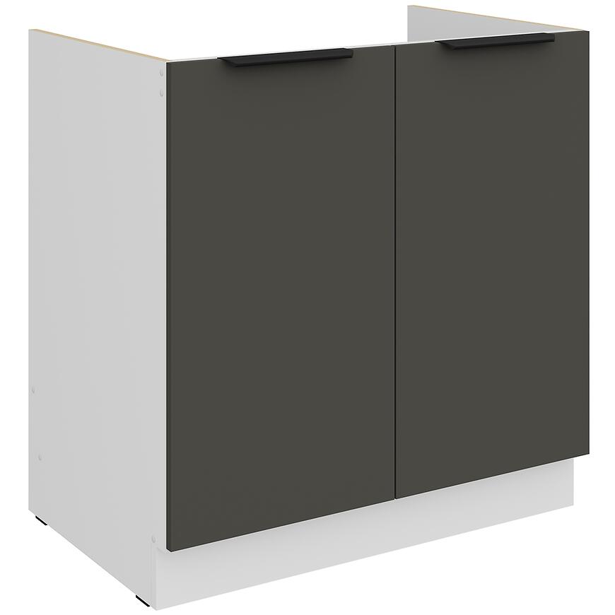 Szafka kuchenna Aria-Gr/Wh Anti Fingerprint 80zl 2f Bb to funkcjonalne i stylowe rozwiązanie do nowoczesnej kuchni. Dwa fronty dolne, matowe wykończenie i cichy domyk łączą wygodę użytkowania z eleganckim designem, wprowadzając porządek i styl do każdej kuchni.