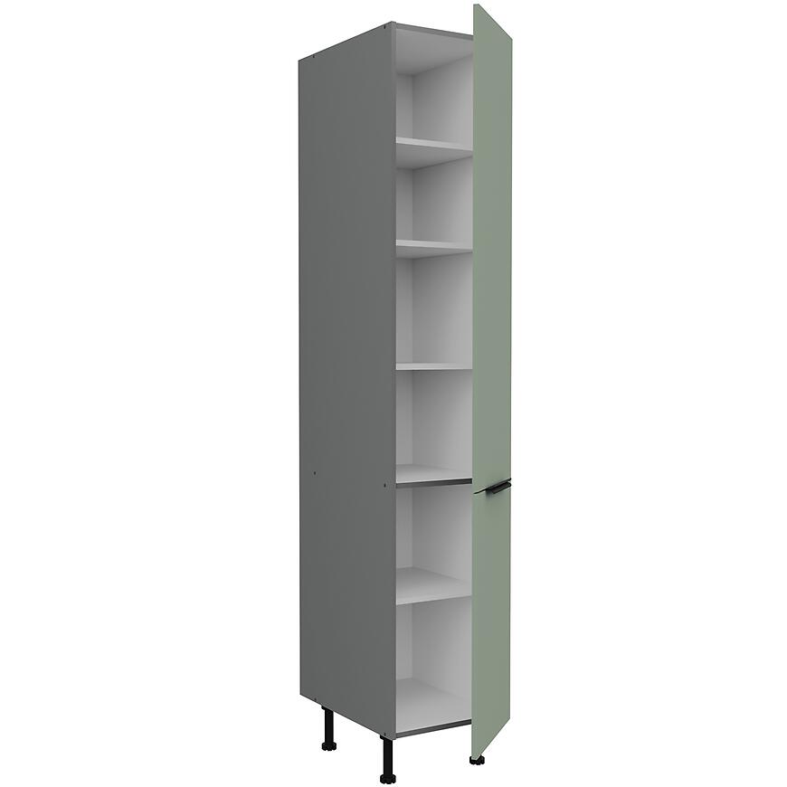 Model 40dk-215 2f z kolekcji Aria Aquamarine to pojemna szafka kolumnowa o wymiarach 215 × 40 × 57 cm, idealna do wysokiej zabudowy kuchennej. Szafka łączy nowoczesny design z funkcjonalnością, zapewniając dużo miejsca do przechowywania naczyń, artykułów spożywczych i akcesoriów kuchennych.