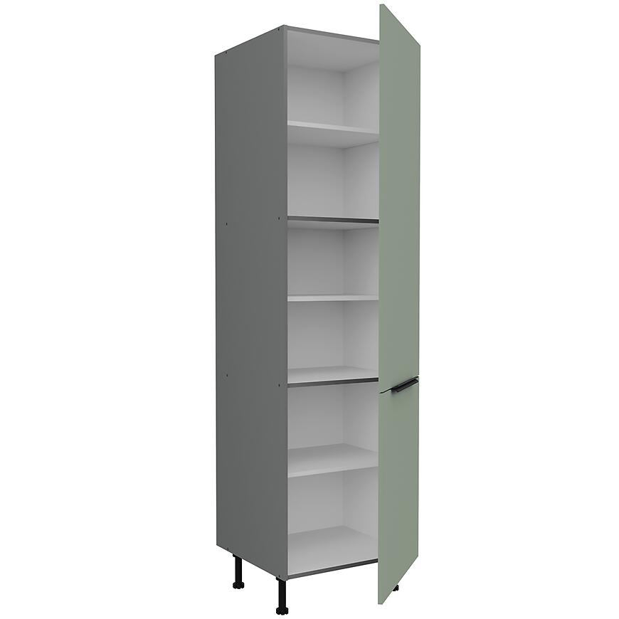 Model 60dk-215 2f z kolekcji Aria Aquamarine to wysoka, pojemna szafka kolumnowa o wymiarach 215 × 60 × 57 cm, idealna do zabudowy kuchennej w miejscach, gdzie potrzebna jest duża przestrzeń do przechowywania. Szafka łączy nowoczesny design z funkcjonalnością, oferując przestrzeń do przechowywania naczyń, produktów spożywczych i akcesoriów kuchennych.