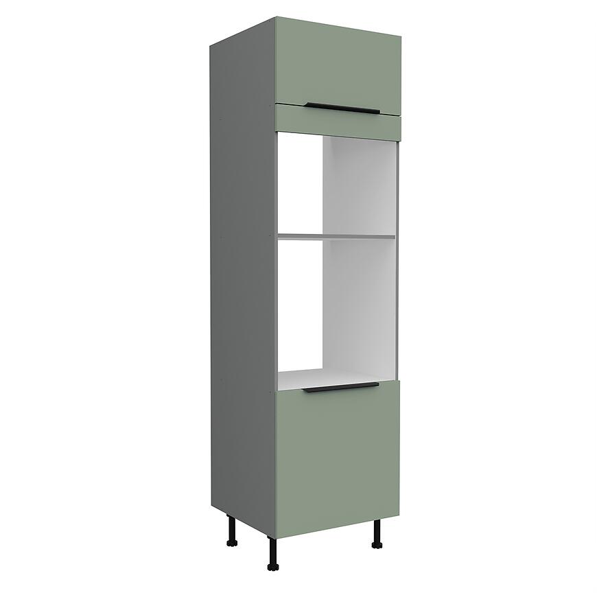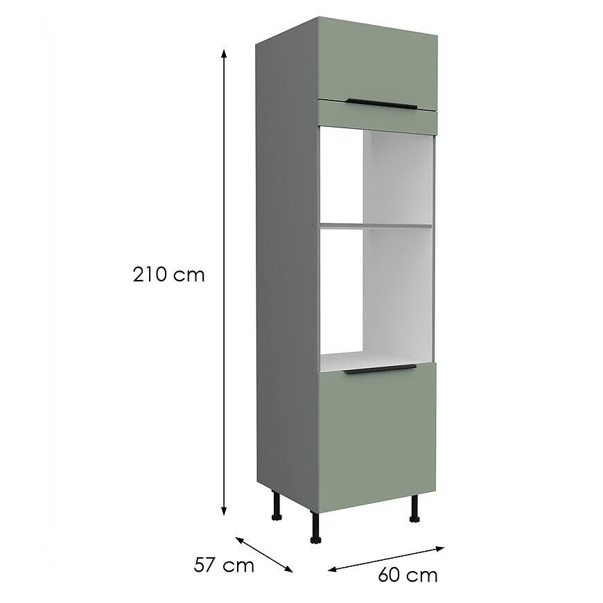 Szafka Kuchenna Aria-Sa/Ant Anti Fingerprint 60dpm-215 2f – wysoka kolumna kuchennej zabudowy z frontem Aquamarine i dwiema dolnymi szufladami w zielonym kolorze. Matowe wykończenie i powłoka Anti Fingerprint ułatwiają utrzymanie czystości.
