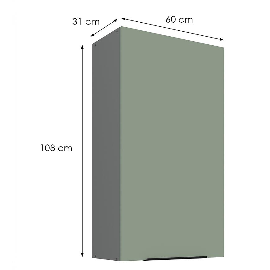 Technologia Anti Fingerprint ogranicza widoczność odcisków palców, dzięki czemu fronty pozostają czyste i estetyczne. Szafka o wymiarach 108 cm wysokości, 60 cm szerokości i 31 cm głębokości zapewnia praktyczną przestrzeń do przechowywania oraz wygodny dostęp do wnętrza.