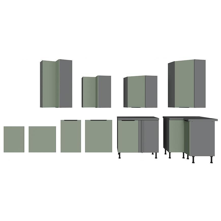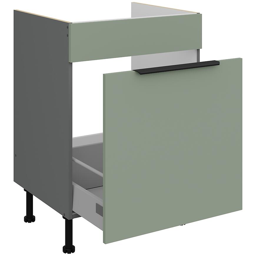 Dolny front jest zielony, a front górny aquamarine, co w połączeniu z szarym korpusem nadaje kuchni nowoczesny i elegancki wygląd. Mechanizm cichego domyku zapewnia płynne i bezgłośne zamykanie szuflady, zwiększając komfort użytkowania i chroniąc front przed uszkodzeniami. Szafka wyposażona jest w nóżki, co ułatwia stabilne ustawienie na podłodze. Szafka wymaga samodzielnego złożenia, a solidna konstrukcja gwarantuje trwałość i wygodę montażu.