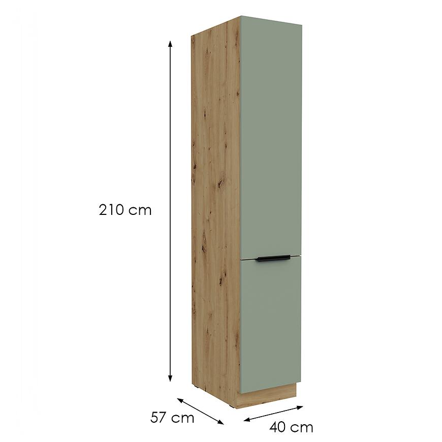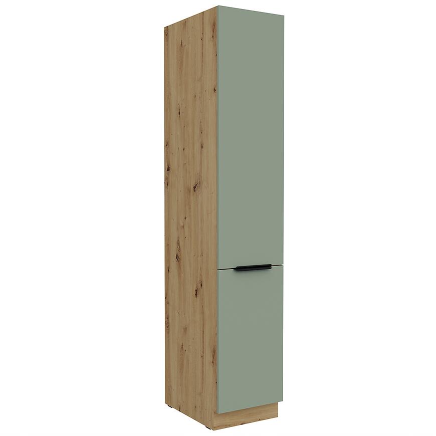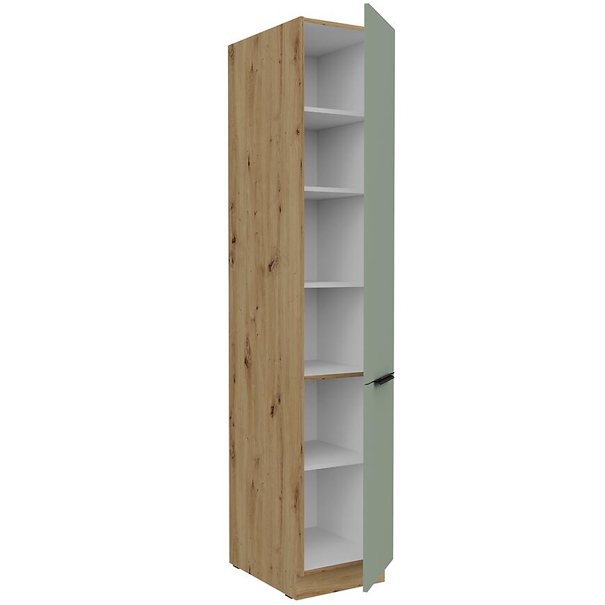 Model Aria-Sa/Ar powstał z płyty wiórowej laminowanej, zarówno w przypadku frontów, jak i korpusu. Materiał ten charakteryzuje się stabilnością i odpornością na codzienne użytkowanie, co sprawia, że szafka przez lata prezentuje się równie dobrze, jak w dniu montażu. Matowe wykończenie korpusu i frontów dodaje kuchni elegancji i harmonii, a odpowiednio dopasowany cokół w kolorze korpusu pozwala zachować spójność całej zabudowy. Dzięki temu szafka doskonale wpisuje się w zabudowę kuchni kolumnowej, stanowiąc jej nieodzowny element.