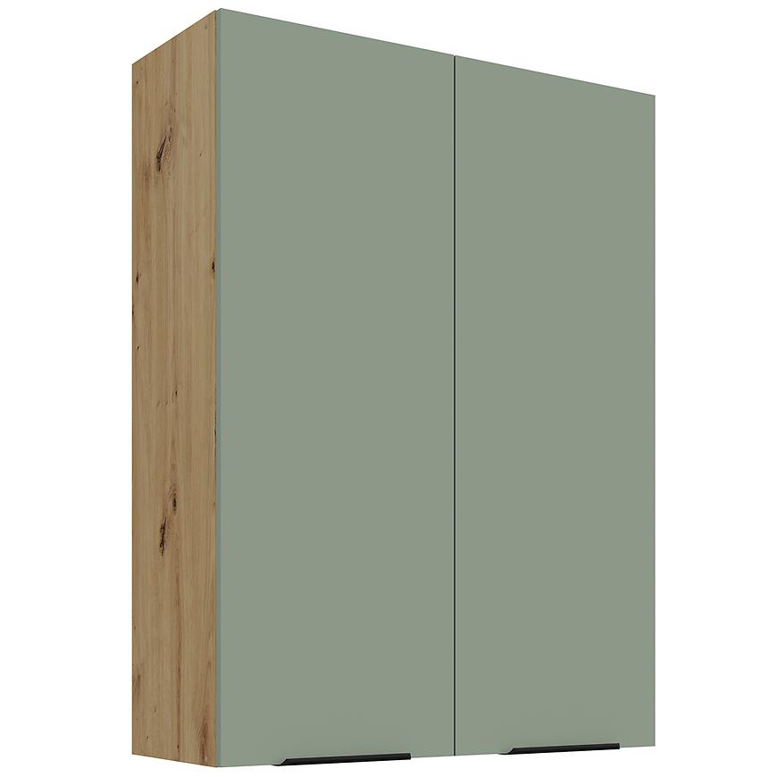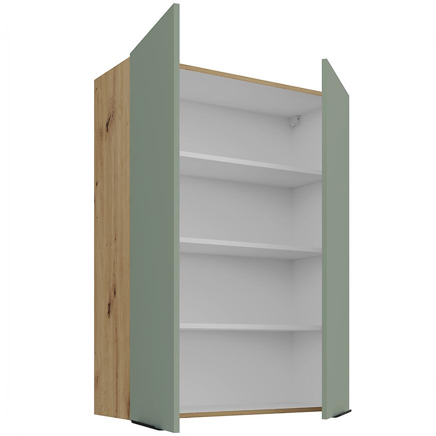 Szafka kuchenna Aria-Sa/Ar Anti Fingerprint 80g-108 2f to elegancki i funkcjonalny mebel górny, który łączy nowoczesny design z wygodą użytkowania. Fronty w kolorze Aquamarine AFM z powłoką Anti Fingerprint ułatwiają utrzymanie czystości i nadają meblowi estetyczny wygląd przez wiele lat. Jasny korpus w odcieniu dąb artisan harmonijnie współgra z zielonymi frontami, tworząc przyjemny wizualny kontrast.