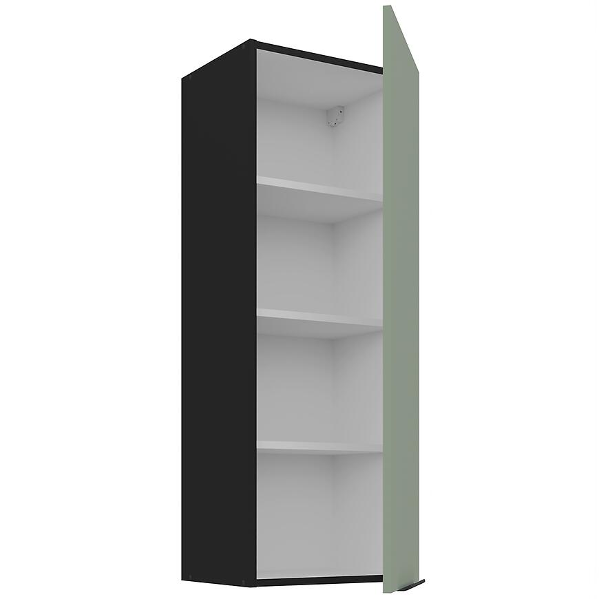 Mebel wykonano z płyty wiórowej laminowanej, co gwarantuje odporność na codzienne użytkowanie i długowieczność mebla. Matowe wykończenie frontów i korpusu podkreśla nowoczesny wygląd, a zielony front w połączeniu z czarnym korpusem tworzy estetyczne i modne zestawienie.