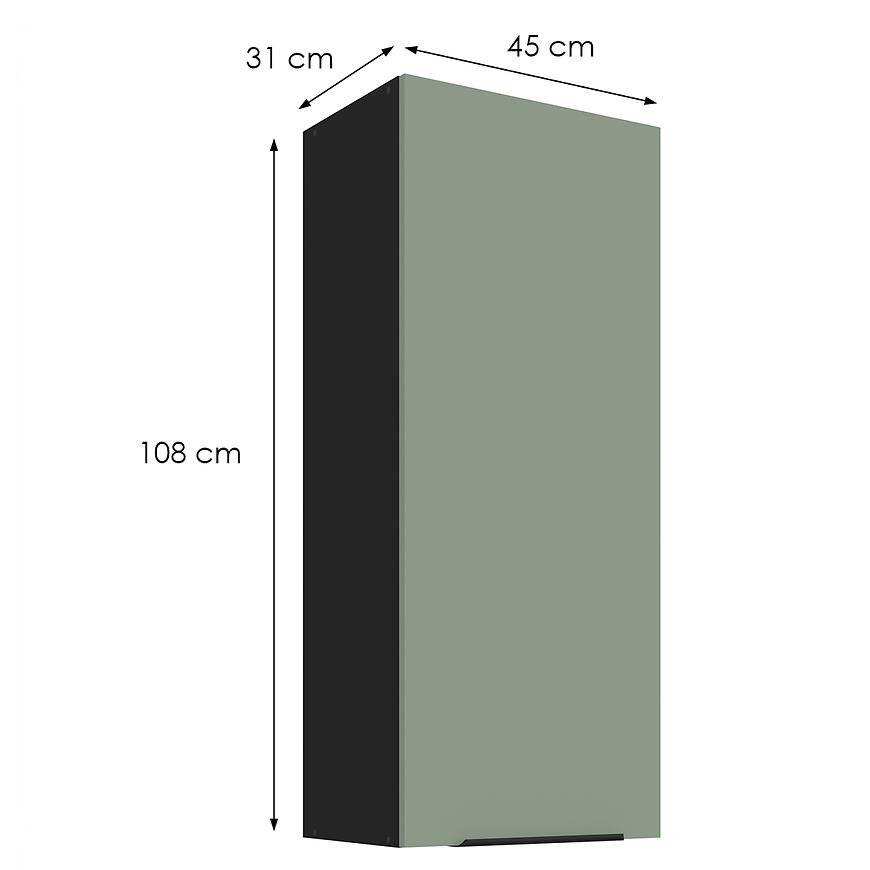Technologia Anti Fingerprint skutecznie ogranicza widoczność odcisków palców, co pozwala utrzymać fronty w nienagannej czystości. Szafka o wymiarach 108 cm wysokości, 45 cm szerokości i 31 cm głębokości zapewnia praktyczną przestrzeń do przechowywania oraz wygodny dostęp do wnętrza.