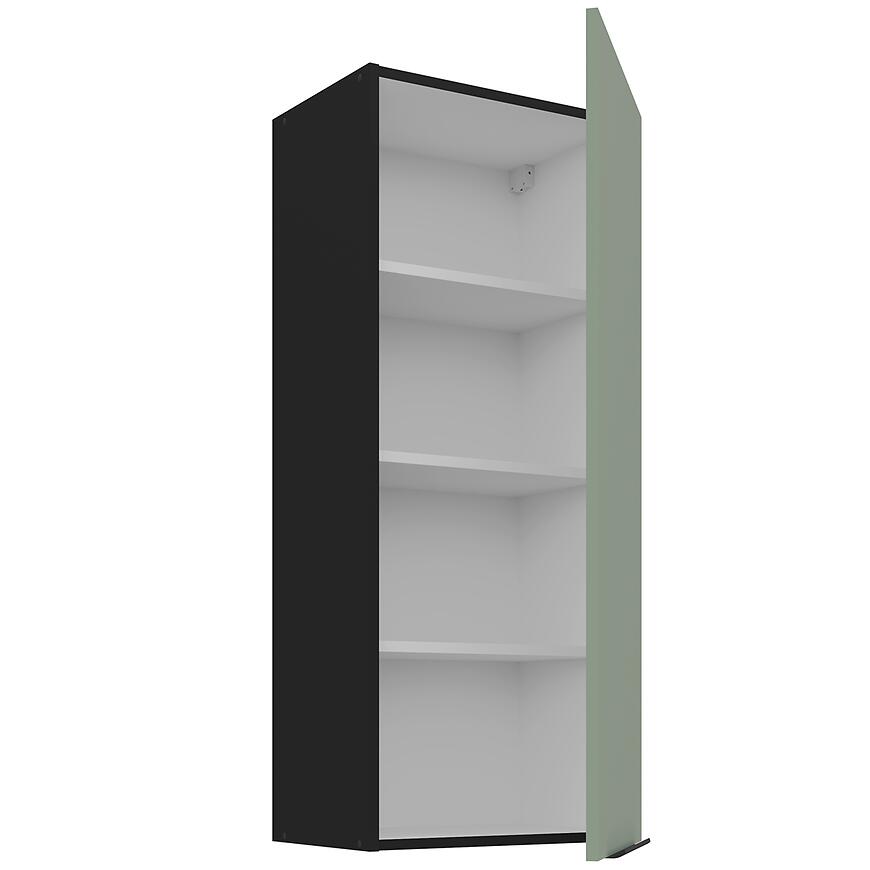 Mebel wykonano z płyty wiórowej laminowanej, co gwarantuje odporność na codzienne użytkowanie i długowieczność mebla. Matowe wykończenie frontów i korpusu podkreśla nowoczesny wygląd, a zielony front w połączeniu z czarnym korpusem tworzy estetyczne i modne zestawienie.