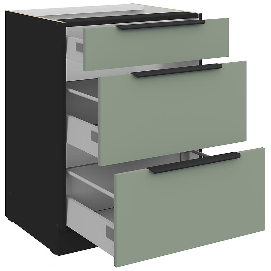 Szafka kuchenna Aria-Sa/Bl Anti Fingerprint 60d 3s Bb to praktyczne rozwiązanie dla osób ceniących styl, trwałość i wygodę. Trzy szuflady, matowy front i cichy domyk łączą estetykę z funkcjonalnością. Idealna do średnich i mniejszych kuchni, wprowadzając świeży wygląd i porządek.