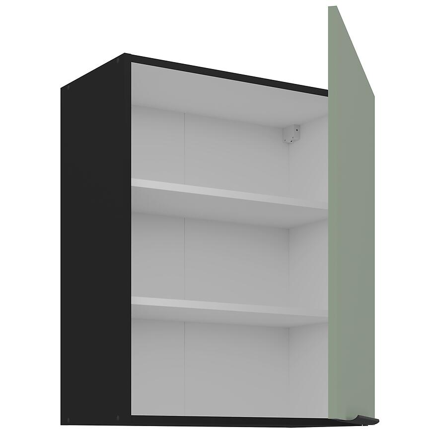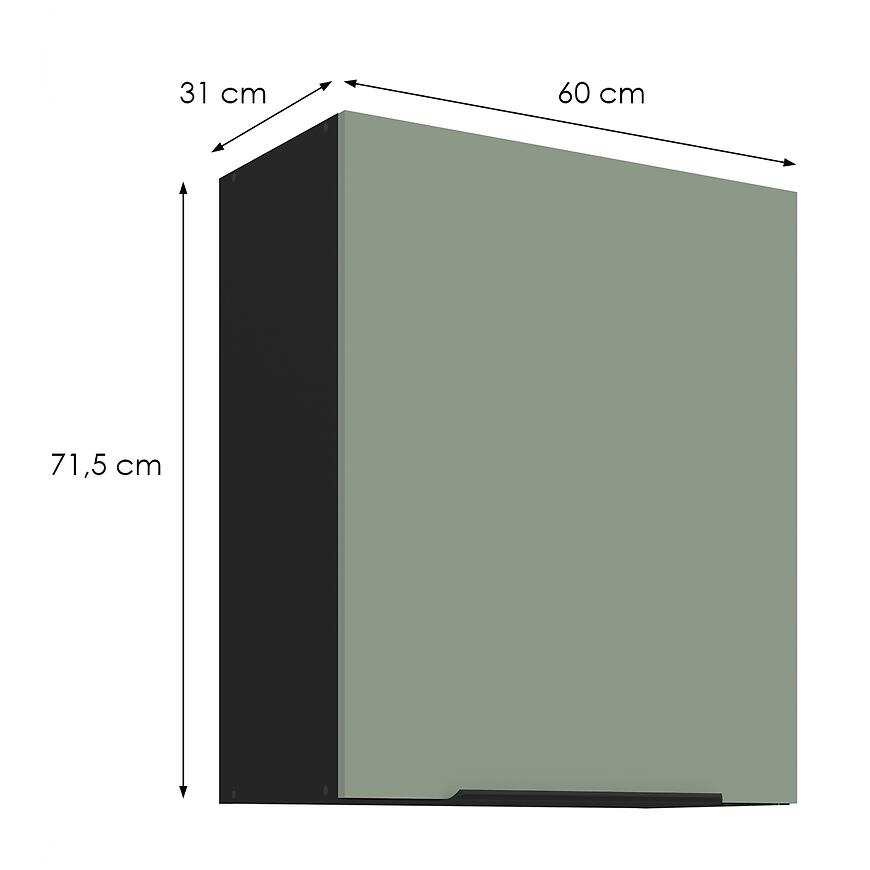Mebel wykonano z płyty wiórowej laminowanej, co gwarantuje odporność na codzienne użytkowanie i długowieczność mebla. Matowe wykończenie frontów i korpusu podkreśla nowoczesny wygląd, a zielony front w połączeniu z czarnym korpusem tworzy estetyczne i modne zestawienie.