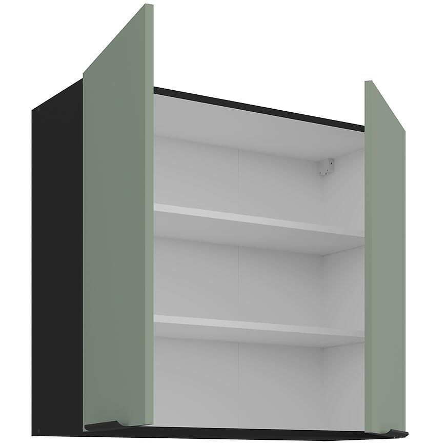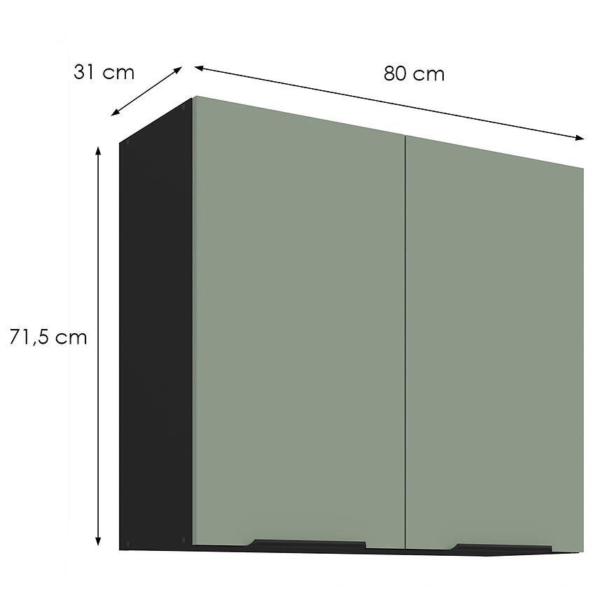 Szafka kuchenna Aria-Sa/Bl Anti Fingerprint 80g-72 2f z kolekcji Aria Aquamarine łączy nowoczesny wygląd z trwałym wykonaniem. Front w kolorze AQUAMARINE AFM o matowym wykończeniu nadaje meblowi elegancki akcent, a czarny korpus podkreśla jego wyrazisty i nowoczesny charakter.