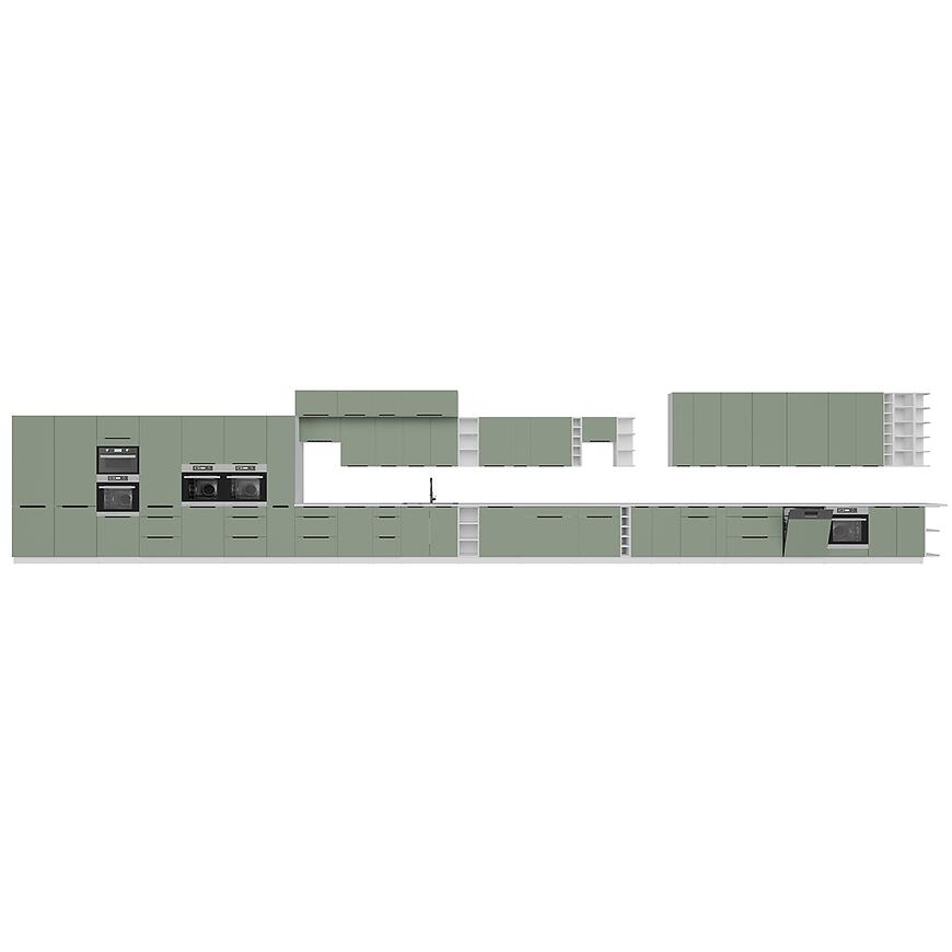 Kolekcja Aria Aquamarine łączy nowoczesny styl z praktycznymi rozwiązaniami. Matowe wykończenie frontu i korpusu minimalizuje widoczność zabrudzeń, a połączenie kolorów aquamarine i biały pasuje zarówno do jasnych, jak i ciemniejszych aranżacji kuchennych. Szafka nie zawiera blatu ani nóg, co pozwala na elastyczne dopasowanie do indywidualnych potrzeb projektowych i aranżacyjnych.