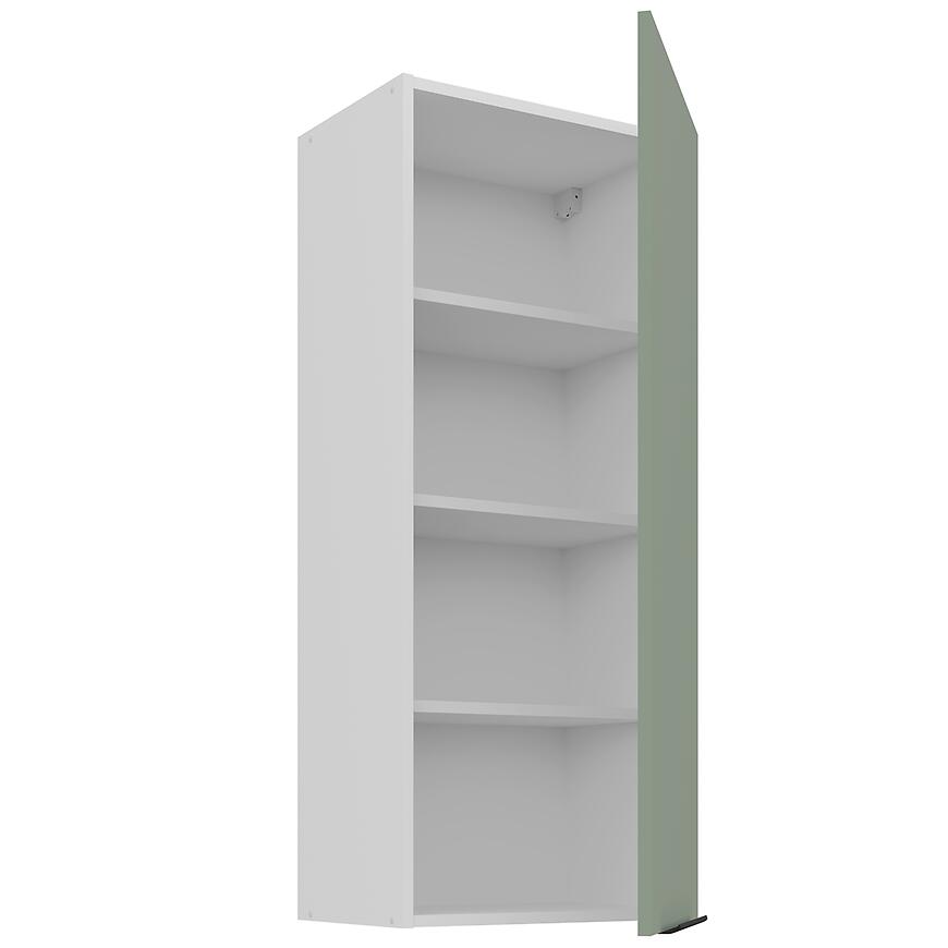 Fronty i korpus wykonano z płyty wiórowej laminowanej, co gwarantuje trwałość i stabilność szafki. Zielone fronty górne wprowadzają delikatny akcent kolorystyczny, a cichy domyk chroni szafkę przed hałasem i uszkodzeniami.