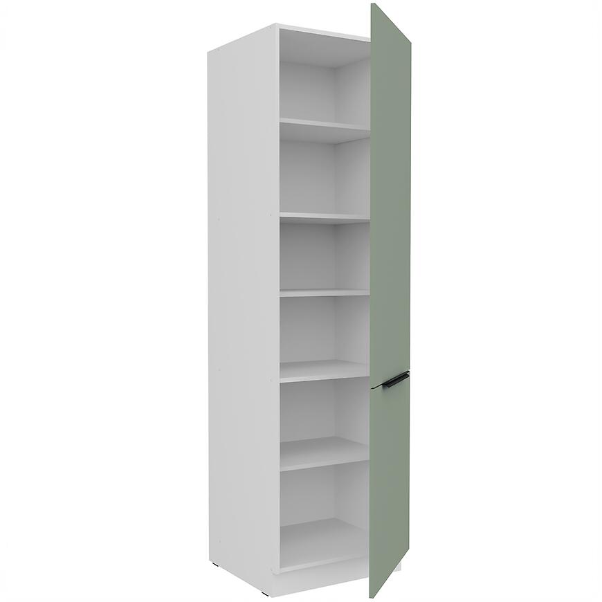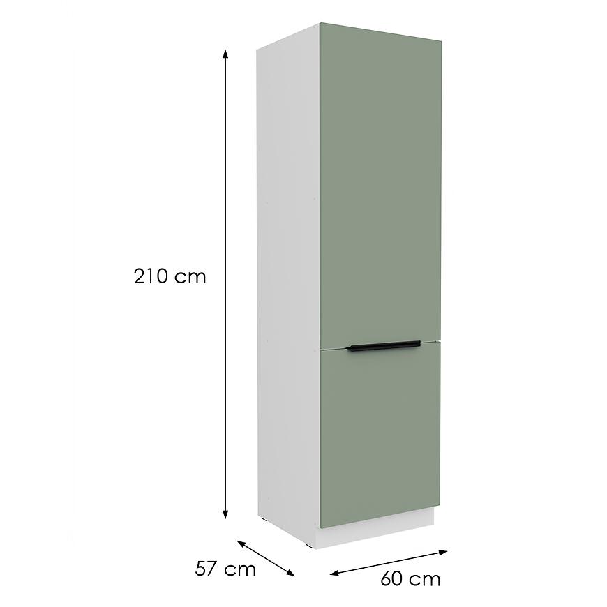 Model 60dk-210 2f z kolekcji Aria Aquamarine to wysoka, kolumnowa szafka kuchenna o imponującej wysokości 210 cm, szerokości 60 cm i głębokości 57 cm. Jest to mebel przeznaczony do tworzenia wysokiej zabudowy kuchennej – idealnej zarówno pod zabudowę sprzętu, jak i jako pojemna przestrzeń do przechowywania. Dzięki swojej konstrukcji pozwala maksymalnie wykorzystać miejsce w kuchni i zachować porządek.