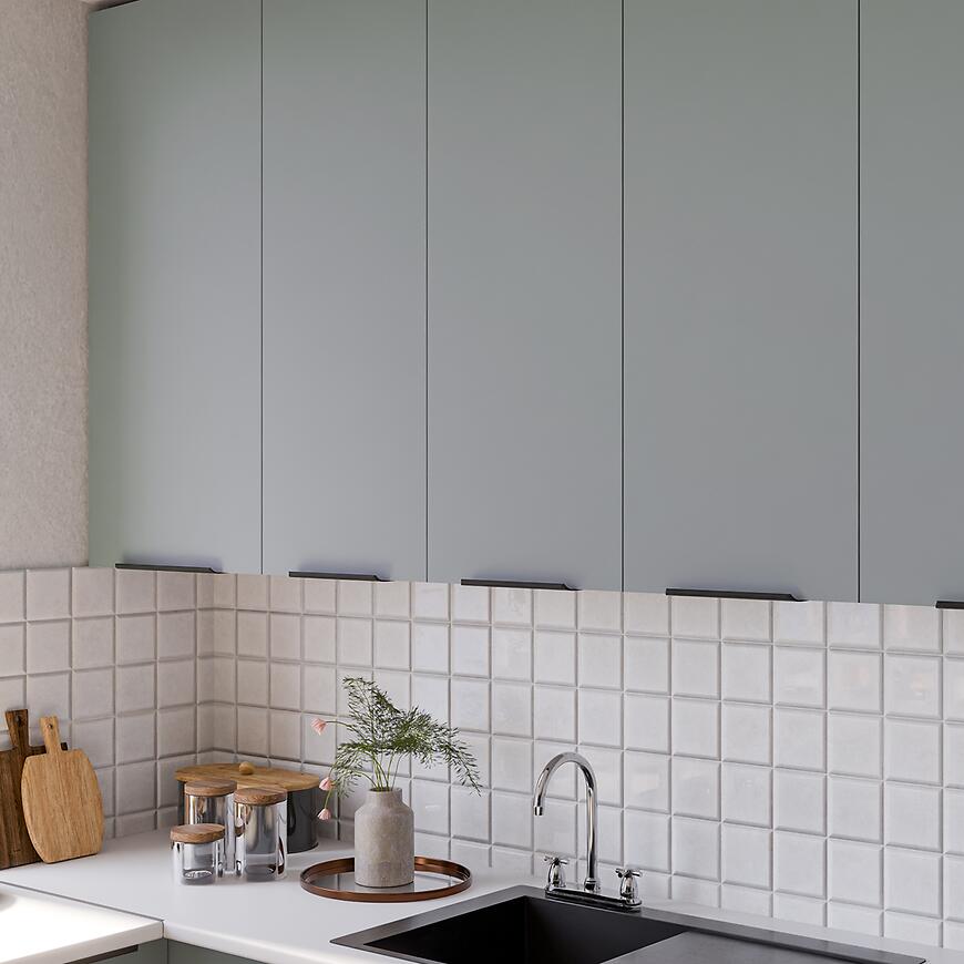 Mebel wykonano z płyty wiórowej laminowanej, co zapewnia odporność na codzienne użytkowanie i długowieczność. Matowe wykończenie frontów i korpusu podkreśla nowoczesny wygląd, a zielone fronty górne w połączeniu z białym korpusem tworzą estetyczne zestawienie.