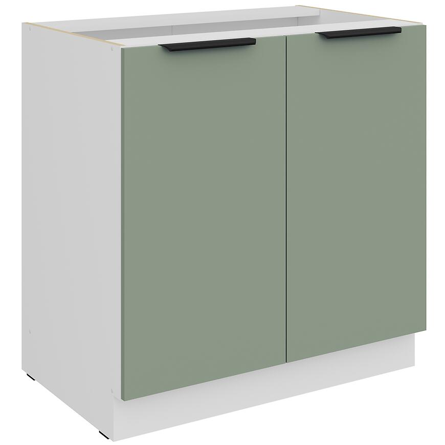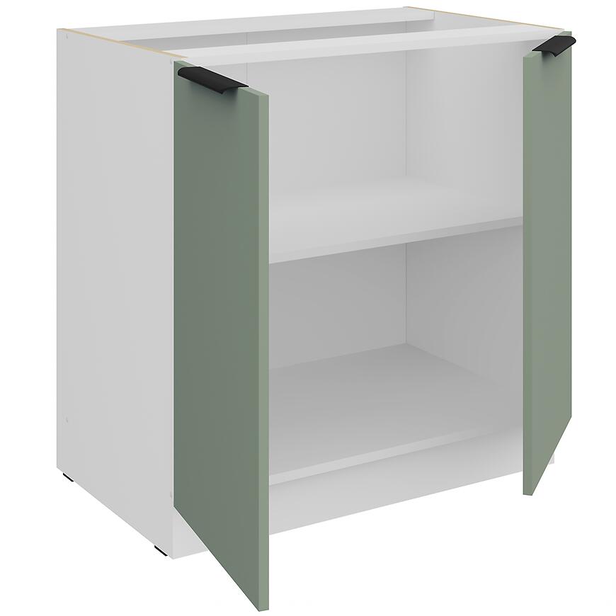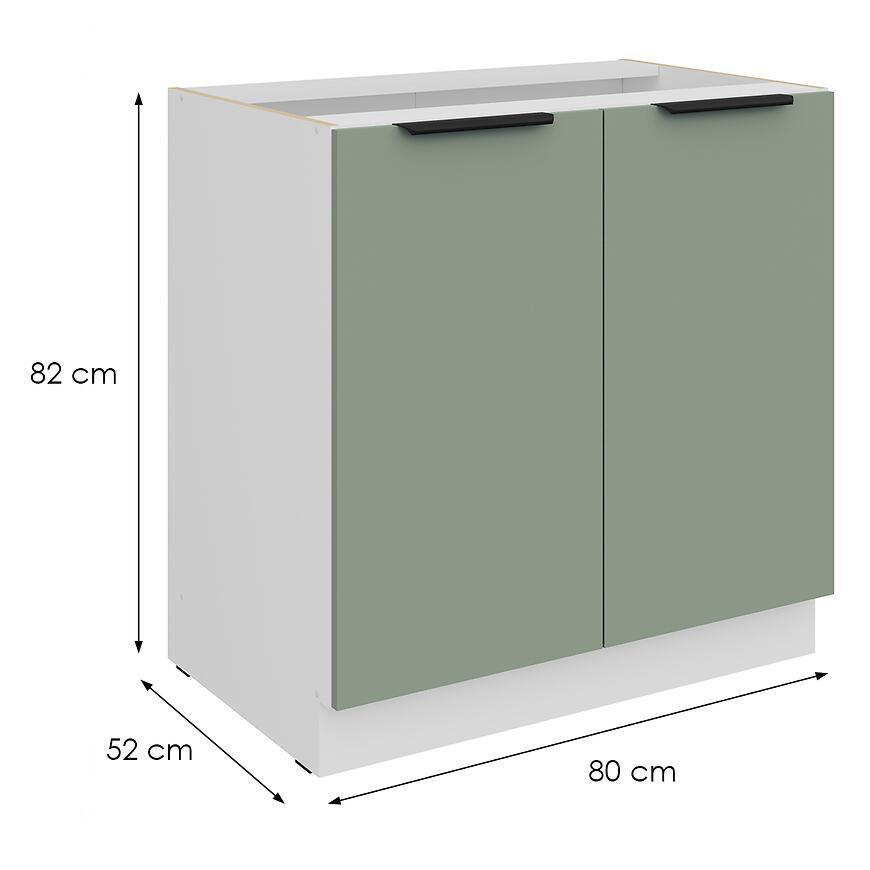 Szafka ma wymiary: wysokość 82 cm, szerokość 80 cm, głębokość 52 cm. Dzięki tym wymiarom doskonale sprawdzi się w standardowych kuchniach, zapewniając funkcjonalną przestrzeń do przechowywania naczyń, garnków i akcesoriów kuchennych. Szafka należy do dolnych szafek kuchennych, co umożliwia łatwe dopasowanie do blatów i pozostałych elementów zabudowy kuchennej.