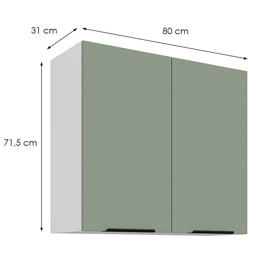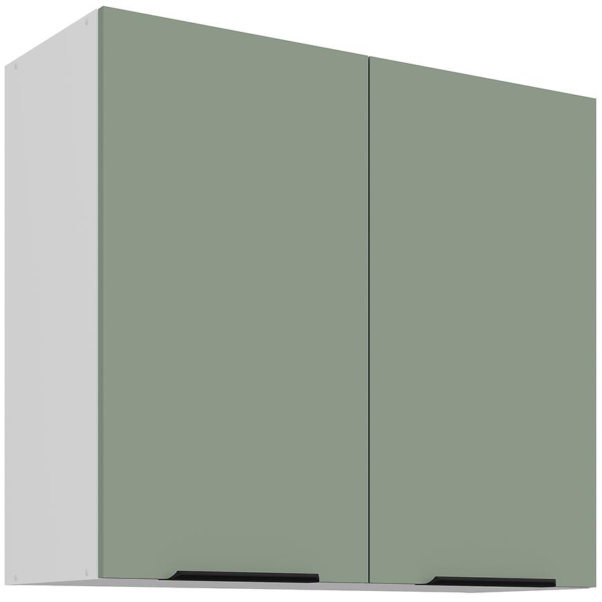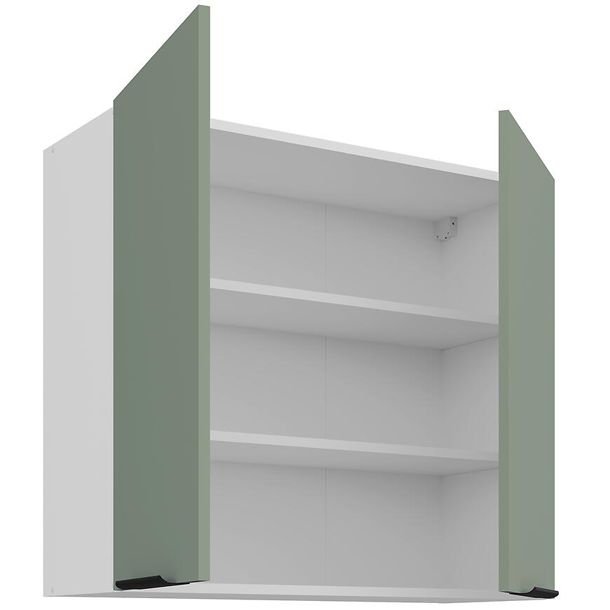 Szafka kuchenna Aria-Sa/Wh Anti Fingerprint 80g-72 2f to idealny wybór dla osób poszukujących funkcjonalnej i nowoczesnej szafki górnej. Matowe fronty, biały korpus, zielone akcenty i cichy domyk łączą estetykę z wygodą, umożliwiając efektywne wykorzystanie przestrzeni w kuchni.
