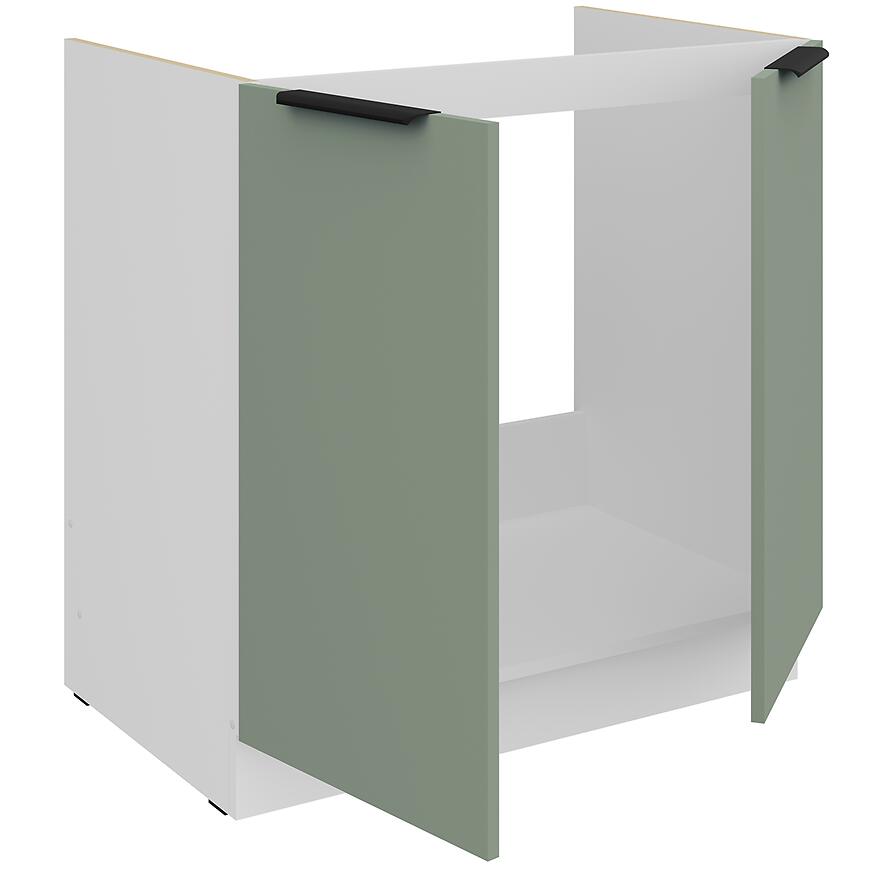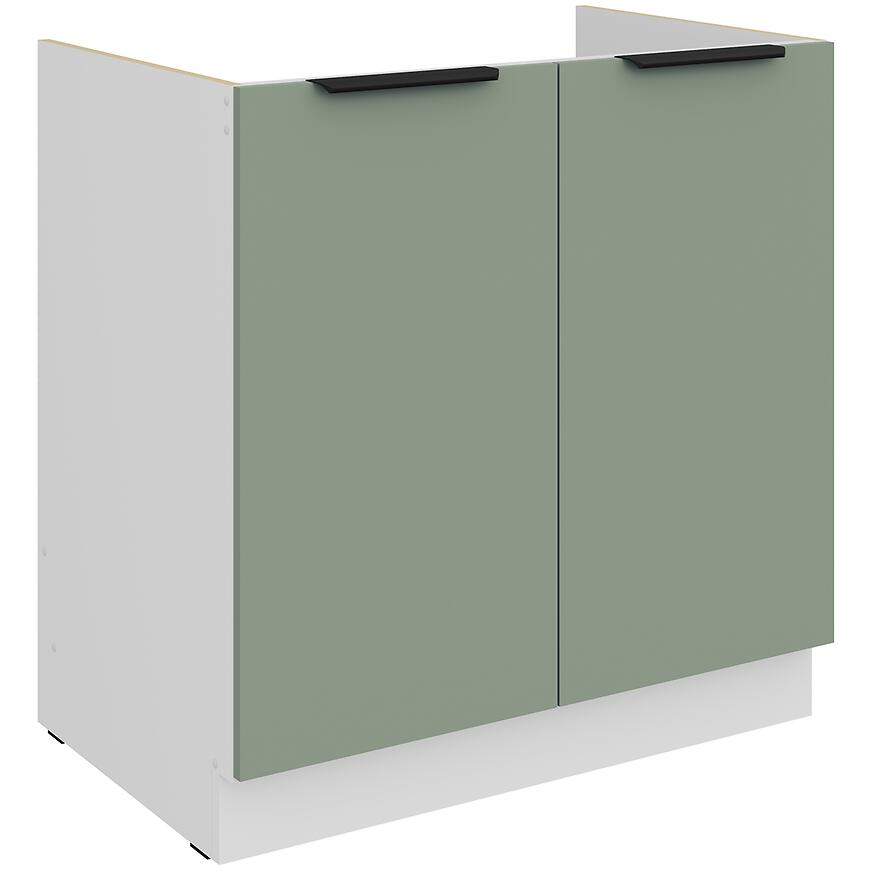 Fronty dolne w szafce Aria-Sa/Wh są zielone, co w połączeniu z białym korpusem nadaje wnętrzu kuchni nowoczesny, świeży charakter. Dzięki zastosowaniu mechanizmu cichego domyku drzwi szafki zamykają się łagodnie i bezgłośnie, co zwiększa komfort codziennego użytkowania i chroni fronty przed uszkodzeniem. Szafka wymaga samodzielnego złożenia, jednak instrukcja montażu jest intuicyjna, a konstrukcja jest solidna i stabilna.