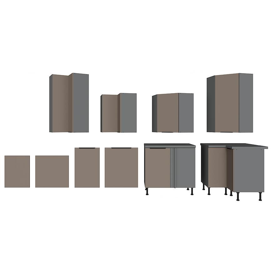 Model należy do grupy szafki kuchenne górne, co pozwala na łatwe łączenie go z innymi elementami kolekcji aria sandgrau. Dołączony cichy domyk zapewnia płynne, delikatne zamykanie drzwiczek, eliminując hałas oraz chroniąc zawiasy przed zużyciem.