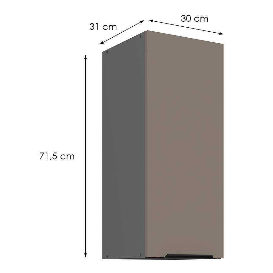 Szafka Kuchenna Aria-Ta/Ant Anti Fingerprint 30g-72 1f to kompaktowy model z kolekcji aria sandgrau, który świetnie sprawdzi się zarówno w małych, jak i rozbudowanych aranżacjach kuchennych. Dzięki wysokości 71,5 cm, szerokości 30 cm oraz głębokości 31 cm idealnie nadaje się do montażu w górnej zabudowie, oferując praktyczną przestrzeń do przechowywania codziennych akcesoriów.