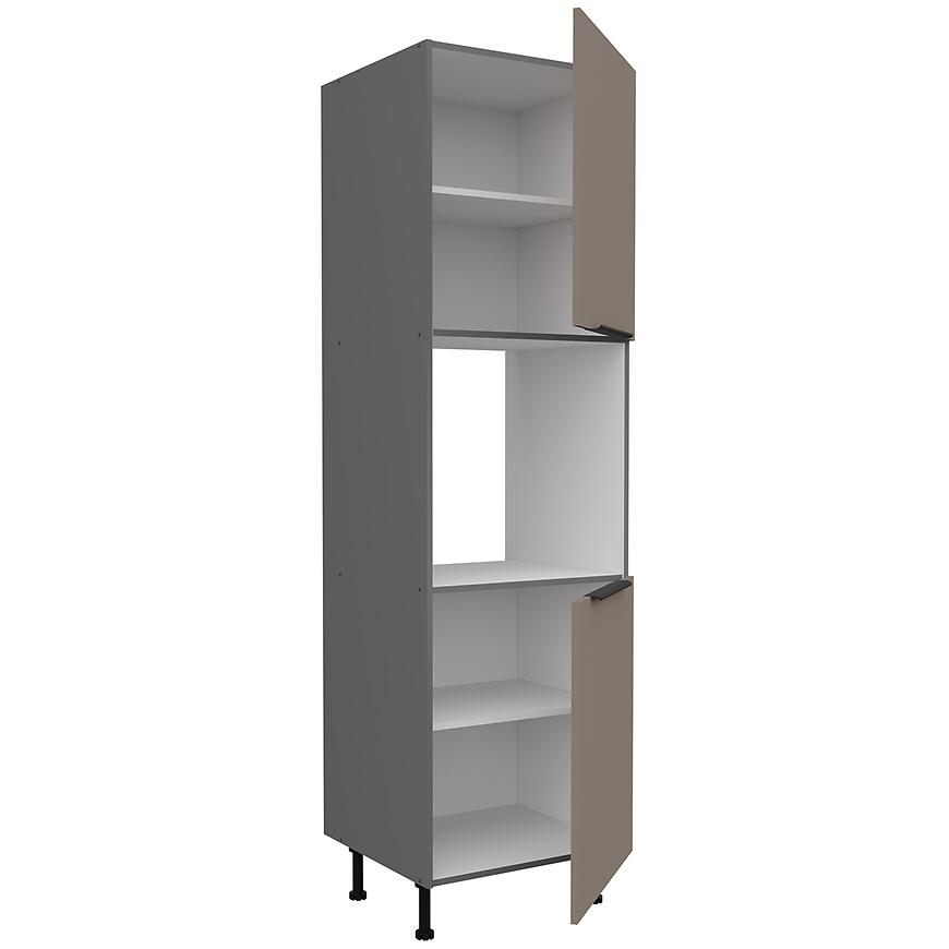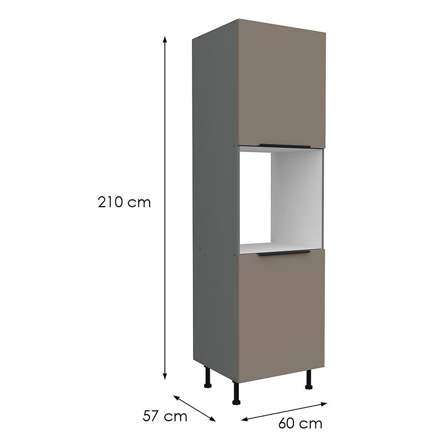 Szafka Kuchenna Aria-Ta/Ant Anti Fingerprint 60dp-215 2f z kolekcji ARIA SANDGRAU łączy nowoczesny design z funkcjonalnym układem wnętrza. Jej wymiary – wysokość 215 cm, szerokość 60 cm i głębokość 57 cm – umożliwiają wygodne wykorzystanie przestrzeni w zabudowie kolumnowej, oferując pojemne miejsce do przechowywania naczyń, produktów i akcesoriów kuchennych. Matowe fronty w kolorze sandgrau harmonizują z antracytowym korpusem, tworząc elegancki i wyrazisty kontrast, który podkreśla nowoczesny charakter kuchni.