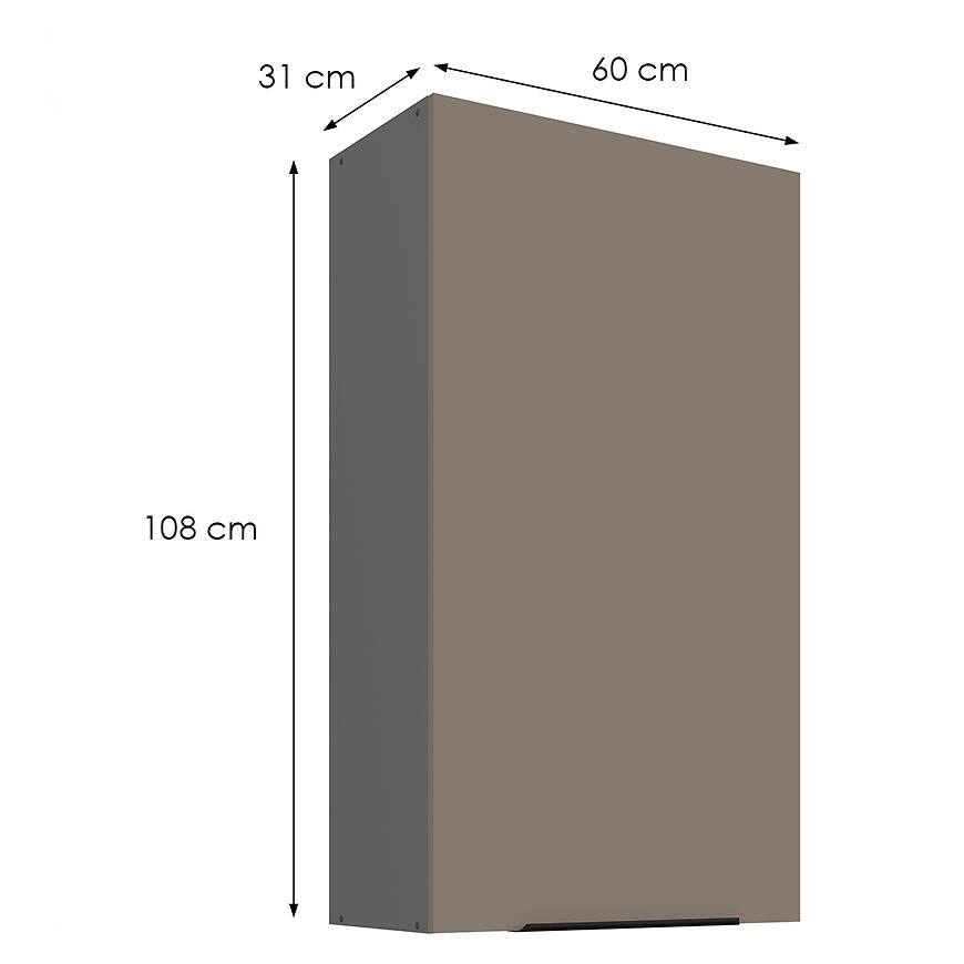 Dzięki wymiarom wysokość 108 cm, szerokość 60 cm, głębokość 31 cm, model Aria 60g-108 1F zapewnia dużą przestrzeń do przechowywania, idealną dla osób potrzebujących dodatkowych szafek górnych w kuchni. Wysoka konstrukcja pozwala na wykorzystanie całej dostępnej przestrzeni ściennej, zachowując jednocześnie porządek i wygodny dostęp do zawartości.