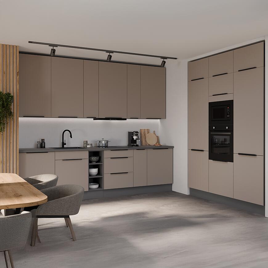 Model 60gu-36 1f jest częścią górnych szafek kuchennych i doskonale komponuje się z pozostałymi elementami kolekcji Aria. Beżowe fronty w połączeniu z szarym korpusem tworzą nowoczesną, spójną całość.