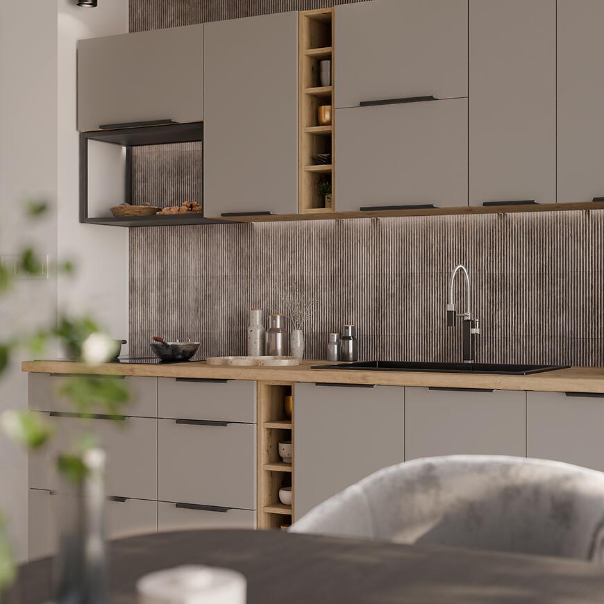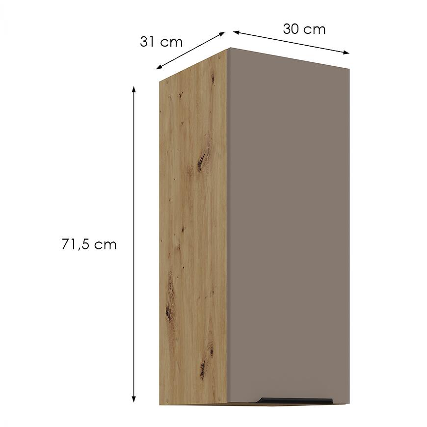 Neutralne barwy i matowe fronty sprawiają, że model Aria 30g-72 1f pasuje do różnych aranżacji kuchennych. Szafka zapewnia wygodną przestrzeń do przechowywania, zachowując uporządkowany i elegancki wygląd wnętrza, co pozwala stworzyć funkcjonalną i estetyczną kuchnię.