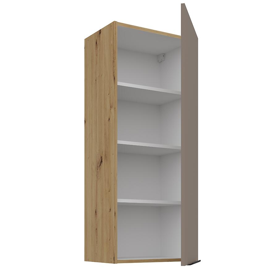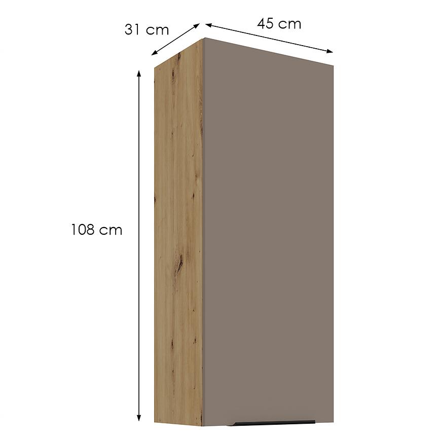 Szafka Kuchenna Aria-Ta/Ar Anti Fingerprint 45g-108 1f to wysoki i praktyczny mebel górny, należący do kolekcji Aria Sandgrau, która łączy stonowaną kolorystykę z matowym, nowoczesnym wykończeniem. Beżowe fronty z powłoką Anti Fingerprint ograniczają widoczność odcisków palców, ułatwiając utrzymanie czystości i estetyki mebla.