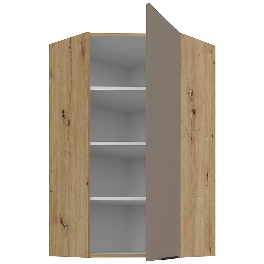 Szafka Kuchenna Aria-Ta/Ar Anti Fingerprint 60x60 Gn-108 1f (45°) to narożny mebel górny, który umożliwia maksymalne wykorzystanie przestrzeni kuchennej. Należy do kolekcji Aria Sandgrau, łączącej subtelne kolory z matowym, nowoczesnym wykończeniem. Beżowe fronty z powłoką Anti Fingerprint ułatwiają utrzymanie czystości, ograniczając widoczność odcisków palców i zachowując elegancki wygląd mebla.