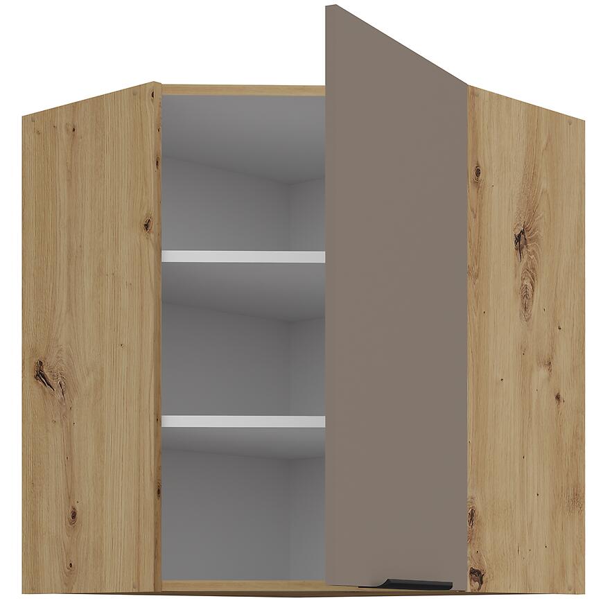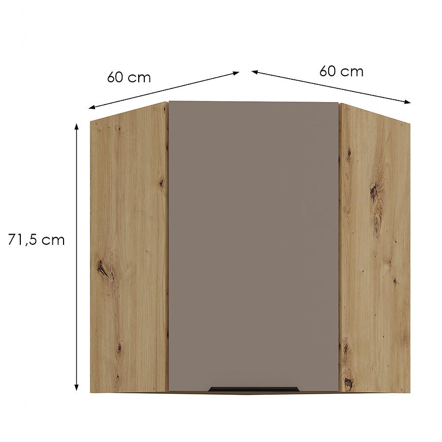 Szafka Kuchenna Aria-Ta/Ar Anti Fingerprint 60x60 Gn-72 1f (45°) to narożny mebel górny, który umożliwia maksymalne wykorzystanie przestrzeni w kuchni. Należy do kolekcji Aria Sandgrau, charakteryzującej się stonowaną kolorystyką i matowym, eleganckim wykończeniem. Beżowe fronty z powłoką Anti Fingerprint ułatwiają utrzymanie mebla w czystości, ograniczając widoczność odcisków palców.