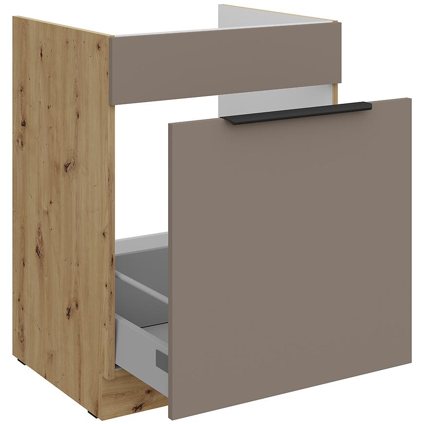 Szafka Aria-Ta/Ar to element kolekcji Aria Sandgrau, który sprawdzi się jako dolna szafka kuchenna w nowoczesnych wnętrzach. Jej neutralne kolory i matowe wykończenie umożliwiają łatwe dopasowanie do różnych aranżacji kuchennych, zarówno w stylu skandynawskim, minimalistycznym, jak i klasycznym.