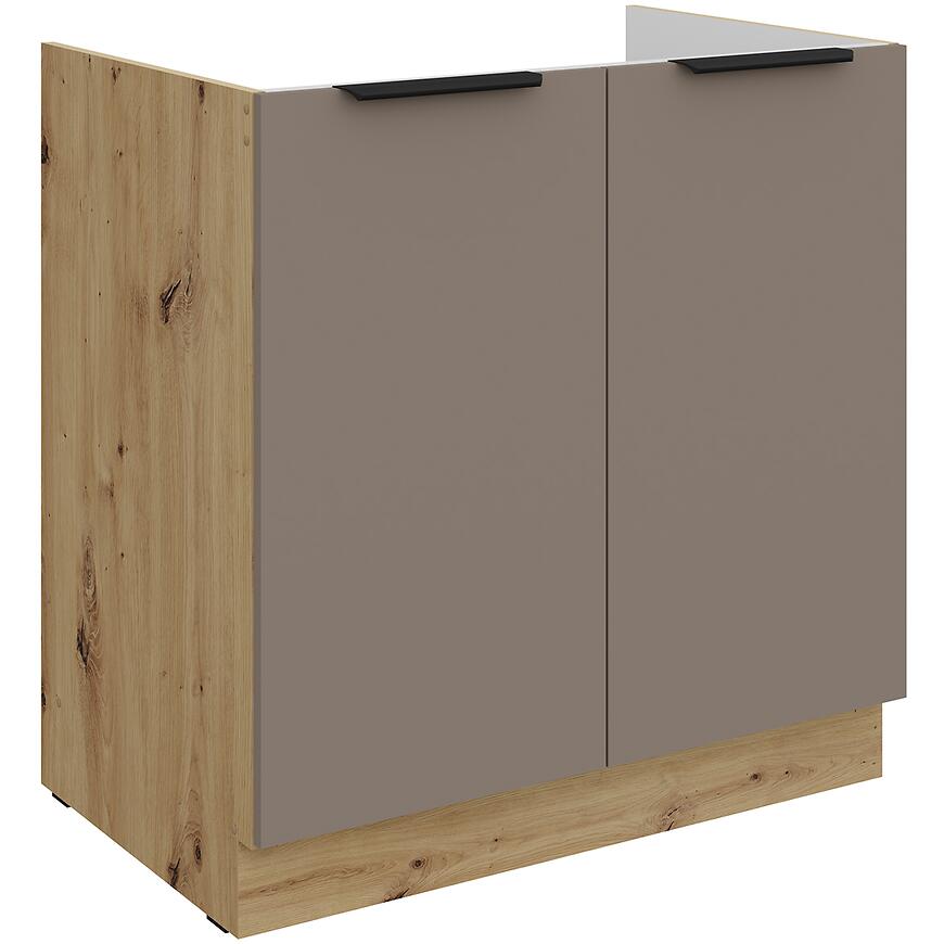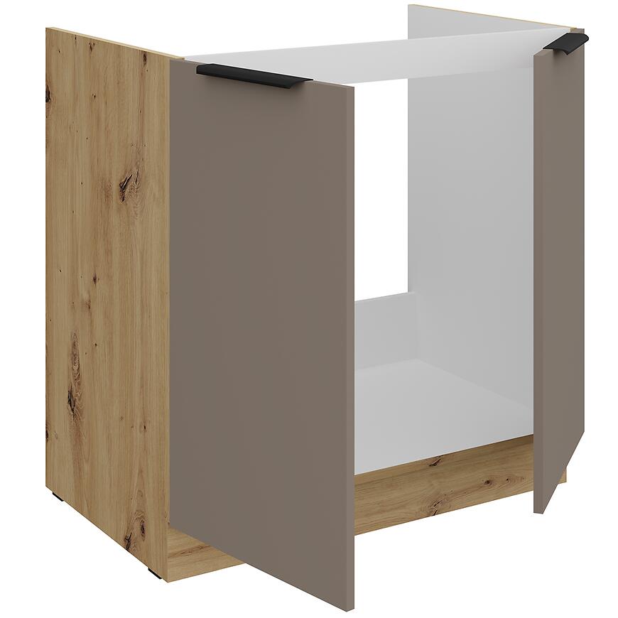 Szafka Kuchenna Aria-Ta/Ar Anti Fingerprint to doskonałe rozwiązanie do nowoczesnej kuchni, łączące elegancki design z funkcjonalnością. Fronty w kolorze sandgrau harmonijnie komponują się z jasnym, drewnopodobnym korpusem w odcieniu dąb artisan, nadając wnętrzu przytulny i nowoczesny charakter. Dzięki matowemu wykończeniu frontów szafka prezentuje się stylowo i jednocześnie jest odporna na odciski palców, co ułatwia utrzymanie czystości.
