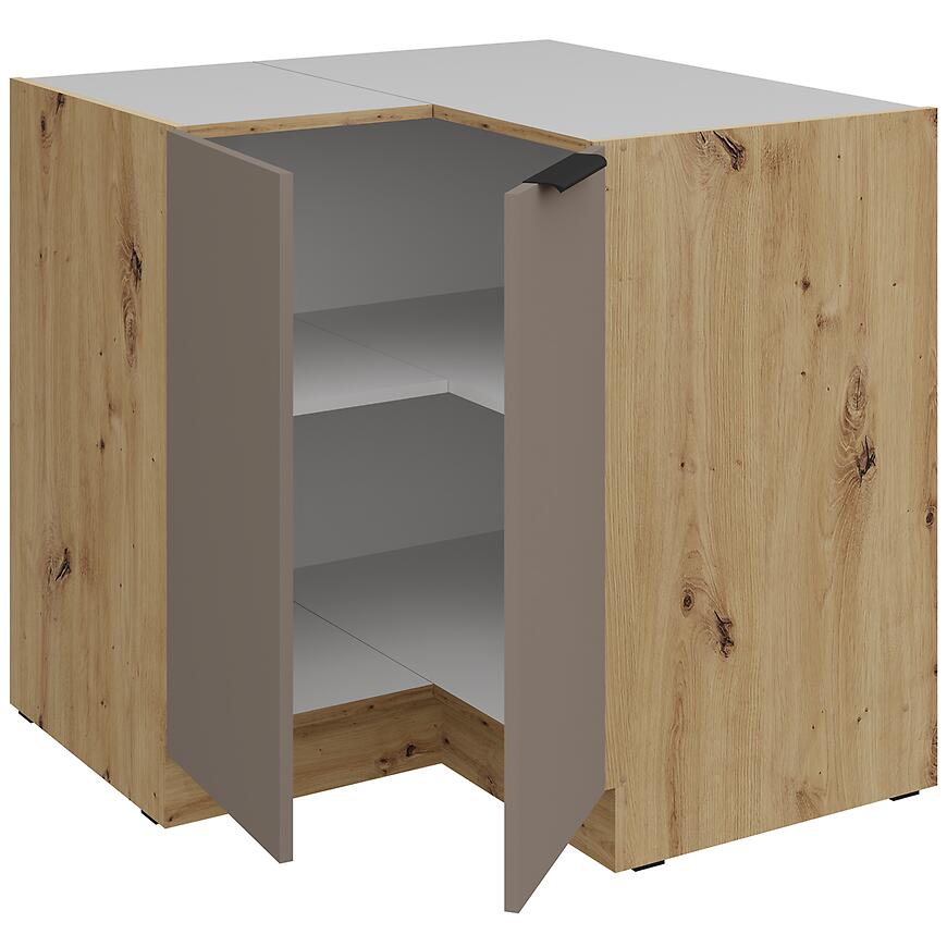 Szafka Kuchenna Aria-Ta/Ar Anti Fingerprint to doskonałe rozwiązanie do nowoczesnej kuchni, łączące elegancki design z funkcjonalnością. Fronty w kolorze sandgrau harmonijnie komponują się z jasnym, drewnopodobnym korpusem w odcieniu dąb artisan, nadając wnętrzu przytulny i nowoczesny charakter. Dzięki matowemu wykończeniu frontów szafka prezentuje się stylowo i jednocześnie jest odporna na odciski palców, co ułatwia utrzymanie czystości.