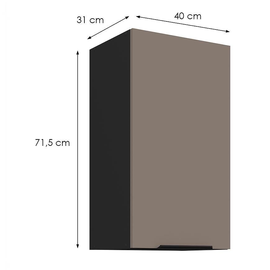Szafka wyposażona jest w jedne drzwi (1F), co pozwala na wygodne przechowywanie naczyń, przypraw, drobnych akcesoriów kuchennych lub innych niezbędnych przedmiotów. Dzięki wymiarom wysokość 71,5 cm, szerokość 40 cm i głębokość 31 cm, szafka idealnie nadaje się do umieszczenia nad blatem roboczym lub w narożniku kuchni, maksymalnie wykorzystując dostępną przestrzeń.