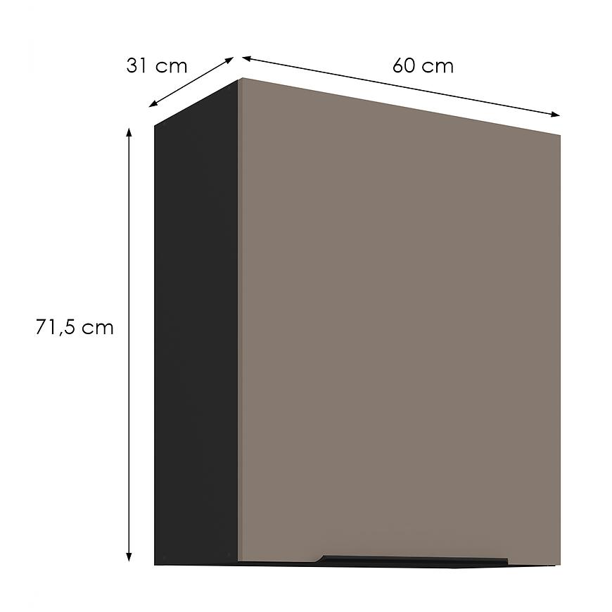 Szafka Kuchenna Aria-Ta/Bl Anti Fingerprint 60g-72 1f z kolekcji Aria Sandgrau łączy elegancję z praktycznym zastosowaniem. Beżowy front z powłoką Anti Fingerprint Blue chroni przed odciskami palców, co ułatwia utrzymanie mebla w czystości. Matowe wykończenie frontu w połączeniu z czarnym korpusem nadaje kuchni nowoczesny charakter.