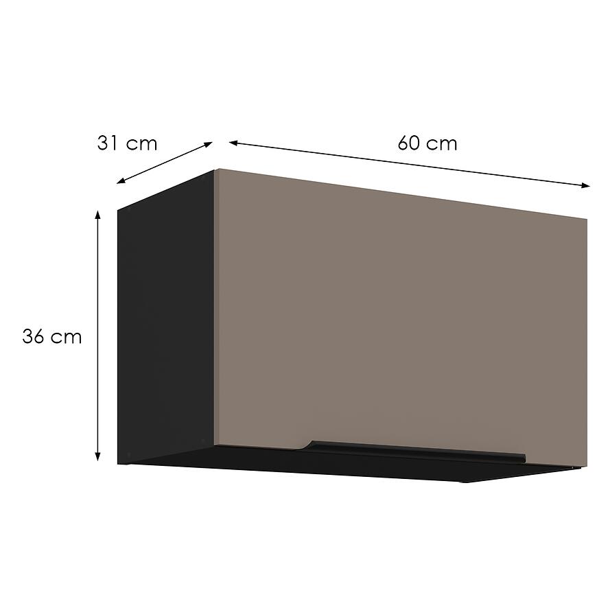 Szafka Kuchenna Aria-Ta/Bl Anti Fingerprint 60gu-36 1f to stylowy i praktyczny element kolekcji Aria Sandgrau, idealny do nowoczesnych kuchni. Beżowy front z powłoką Anti Fingerprint Blue ogranicza odciski palców i ułatwia utrzymanie czystości. Matowe wykończenie frontu w połączeniu z eleganckim czarnym korpusem nadaje meblowi nowoczesny wygląd.