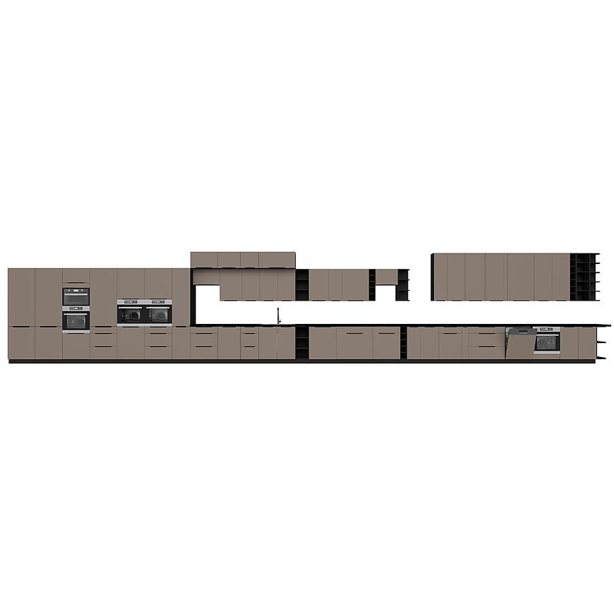 Minimalistyczny design szafki, połączenie beżowych frontów z ciemnym korpusem oraz matowe wykończenie tworzą elegancki i nowoczesny mebel, który wpisuje się w najnowsze trendy wnętrzarskie. Szafka jest uniwersalna i łatwo komponuje się z innymi elementami kolekcji Aria Sandgrau, co pozwala na stworzenie spójnej i harmonijnej aranżacji kuchni.