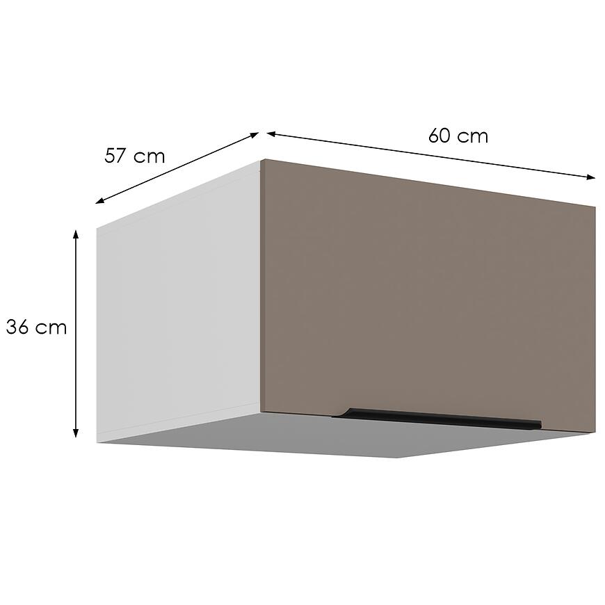 Neutralne barwy frontów i biały korpus sprawiają, że model Aria-Ta/Wh 60 Nagu-36 1f pasuje do różnych aranżacji kuchennych. Szafka zapewnia wygodną przestrzeń do przechowywania, zachowując uporządkowany i elegancki wygląd wnętrza, co pozwala stworzyć funkcjonalną i estetyczną kuchnię.