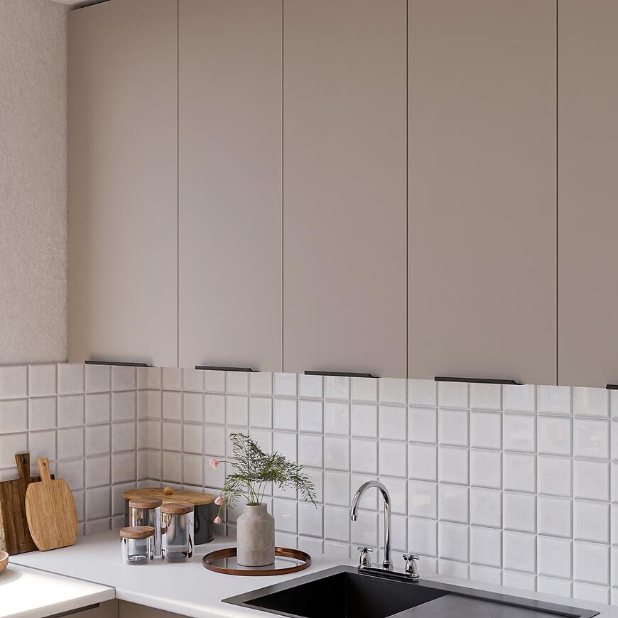 Kolorystyka sandgrau frontów w połączeniu z białym korpusem oraz cokołem sprawia, że szafka Aria-Ta/Wh Anti Fingerprint pasuje do różnych stylów aranżacji – od nowoczesnych po minimalistyczne kuchnie. Neutralne odcienie pozwalają na łatwe zestawienie z innymi meblami i dodatkami, a matowa powierzchnia podkreśla elegancję całego wnętrza.