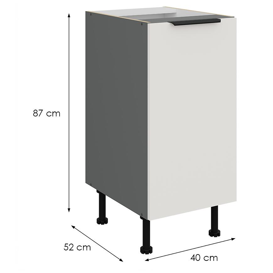Szafka Aria-Wh/Ant Anti Fingerprint 40d 1f Bb to funkcjonalny dolny mebel kuchenny, który łączy przestrzeń do przechowywania z eleganckim, nowoczesnym wyglądem. Dzięki matowemu frontowi anti-fingerprint, pojemnej szufladzie i solidnej konstrukcji, jest idealnym wyborem do nowoczesnych kuchni.