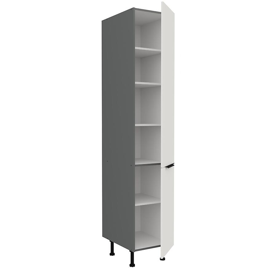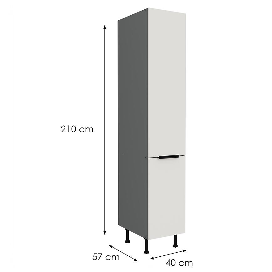 Szafka Kuchenna Aria-Wh/Ant Anti Fingerprint 40dk-215 2f to smukła szafka kolumnowa, zaprojektowana z myślą o nowoczesnych kuchniach, w których liczy się wykorzystanie każdej przestrzeni. Jej wysokość 215 cm i głębokość 57 cm zapewniają dużą pojemność, natomiast szerokość 40 cm pozwala na montaż w wąskich wnękach lub jako uzupełnienie większej zabudowy. Szafka umożliwia wygodne przechowywanie naczyń, produktów spożywczych, akcesoriów kuchennych i drobnego sprzętu AGD.
