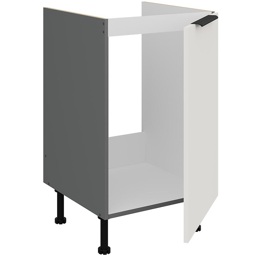 Brak blatu w zestawie pozwala dopasować szafkę do własnego projektu kuchni i zestawić ją z innymi elementami kolekcji Aria White, tworząc spójną i nowoczesną zabudowę kuchenną.