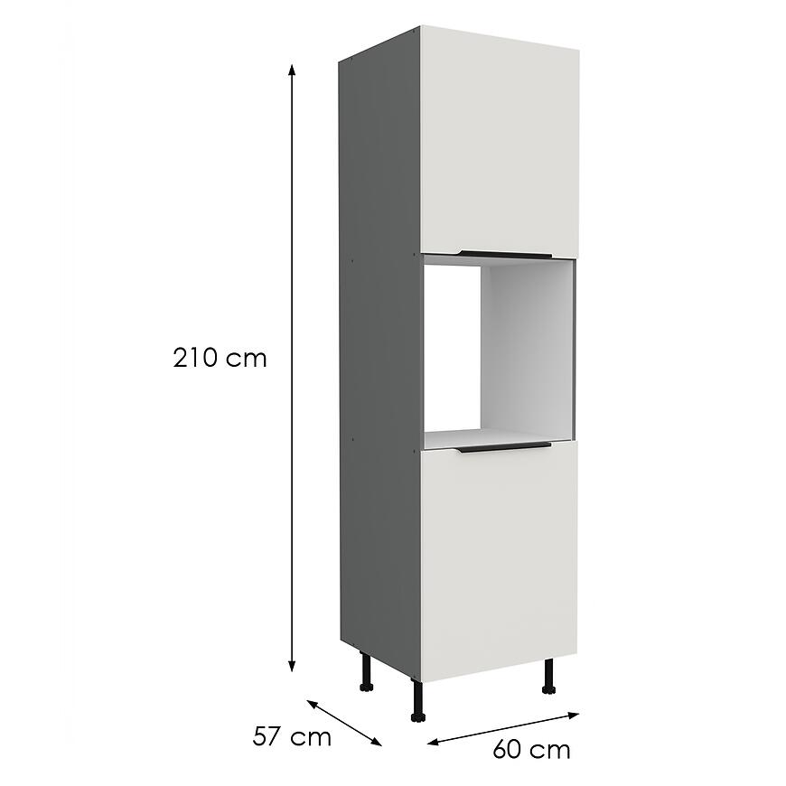 Szafka Kuchenna Aria-Wh/Ant Anti Fingerprint 60dp-215 2f to funkcjonalna szafka kolumnowa, która łączy nowoczesny design z praktycznym wykorzystaniem przestrzeni. Wysokość 215 cm, szerokość 60 cm oraz głębokość 57 cm zapewniają pojemną zabudowę, idealną do przechowywania produktów spożywczych, naczyń, akcesoriów kuchennych oraz drobnego sprzętu AGD.
