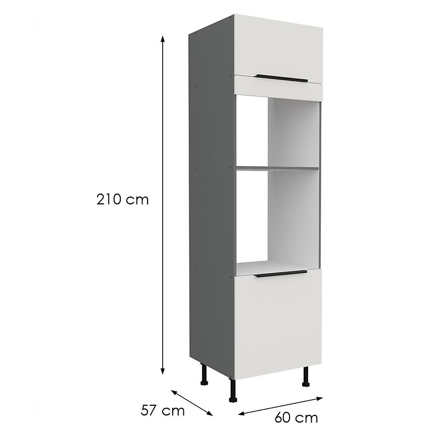Szafka Kuchenna Aria-Wh/Ant Anti Fingerprint 60dpm-215 2f to nowoczesna i funkcjonalna szafka kolumnowa stworzona z myślą o przestronnych kuchniach. Jej wysokość 215 cm, szerokość 60 cm i głębokość 57 cm zapewniają dużą pojemność, umożliwiając przechowywanie naczyń, produktów spożywczych, akcesoriów kuchennych oraz drobnego sprzętu AGD w wygodny i uporządkowany sposób.