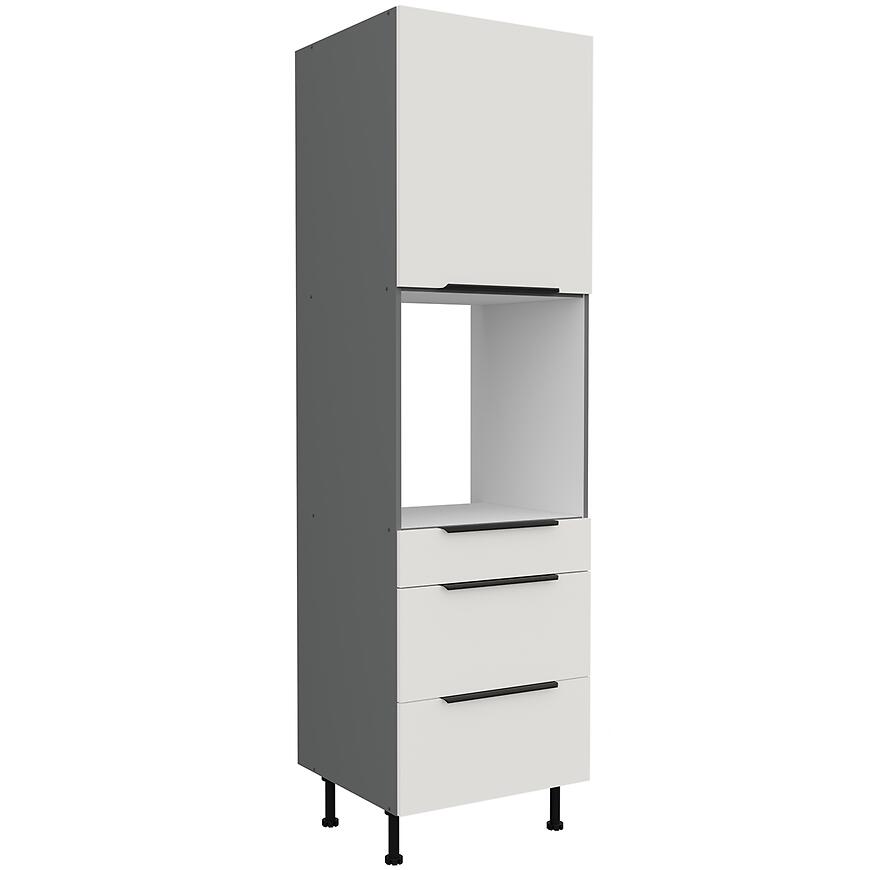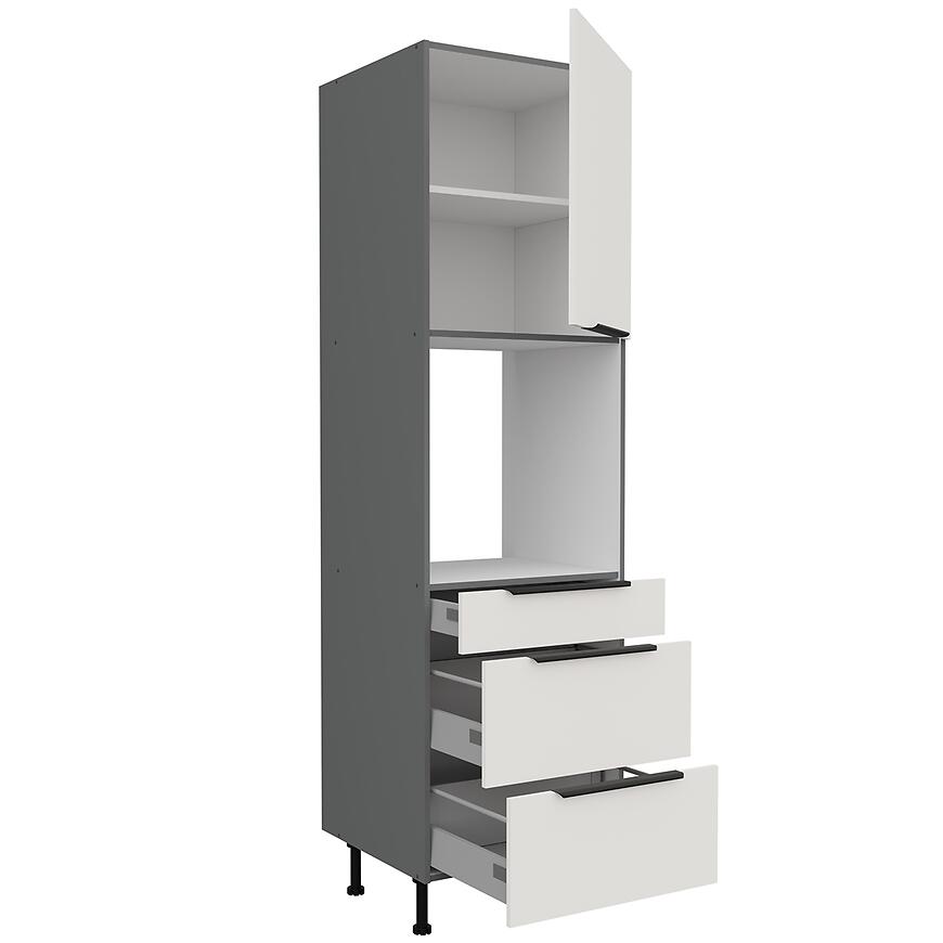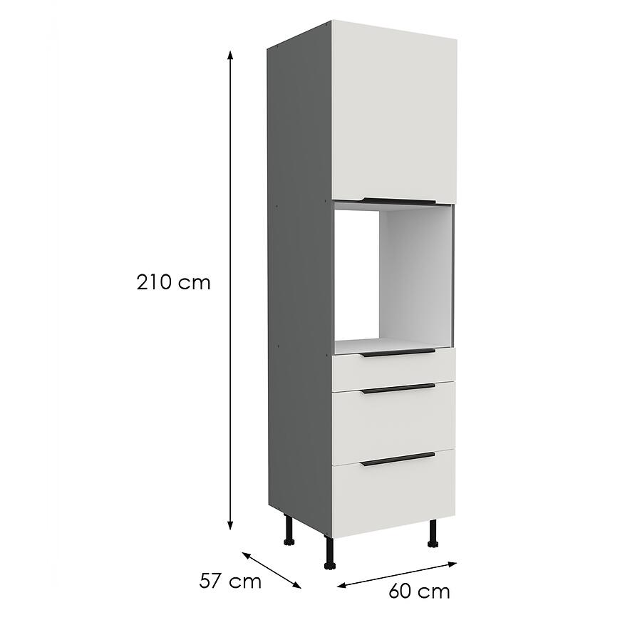 Szafka Kuchenna Aria-Wh/Ant Anti Fingerprint 60dps-215 1f 3s to funkcjonalna i nowoczesna szafka kolumnowa, zaprojektowana z myślą o wysokich zabudowach kuchennych. Jej wysokość 215 cm, szerokość 60 cm i głębokość 57 cm zapewniają przestrzeń do przechowywania naczyń, produktów spożywczych oraz drobnego sprzętu AGD, co czyni ją idealnym rozwiązaniem do kuchni, w których liczy się porządek i organizacja.