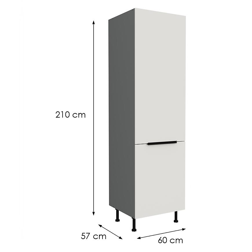 Szafka Kuchenna Aria-Wh/Ant Anti Fingerprint 60lo-215 2f to nowoczesna, funkcjonalna szafka kolumnowa stworzona z myślą o przestronnych i dobrze zorganizowanych kuchniach. Jej wysokość 215 cm, szerokość 60 cm i głębokość 57 cm pozwalają na efektywne wykorzystanie przestrzeni pionowej, zapewniając dużą pojemność do przechowywania produktów spożywczych, naczyń, akcesoriów kuchennych oraz drobnego sprzętu AGD.