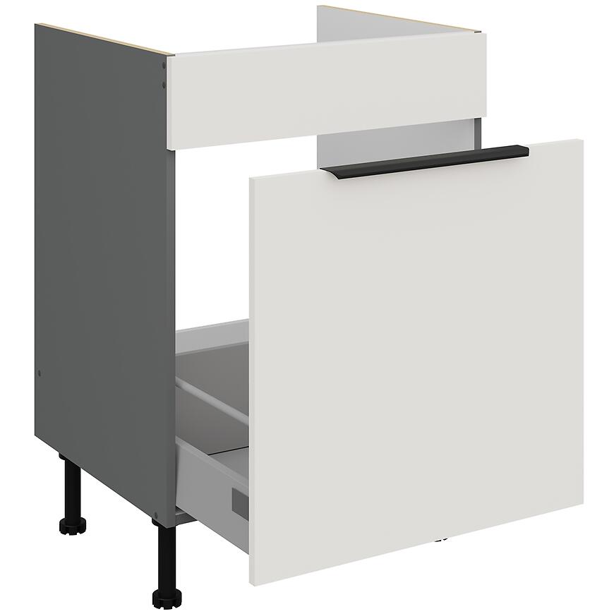 Model nie posiada blatu, co pozwala dopasować go do indywidualnego projektu kuchni i zestawić z innymi elementami kolekcji Aria White, tworząc spójną i funkcjonalną zabudowę kuchenną.