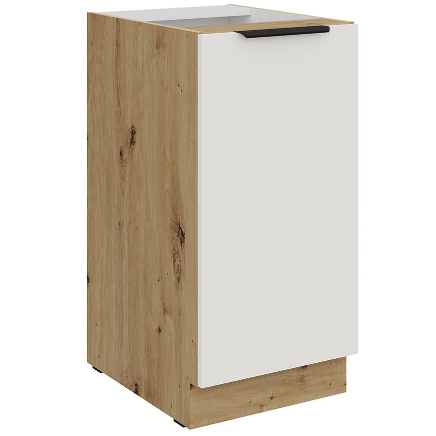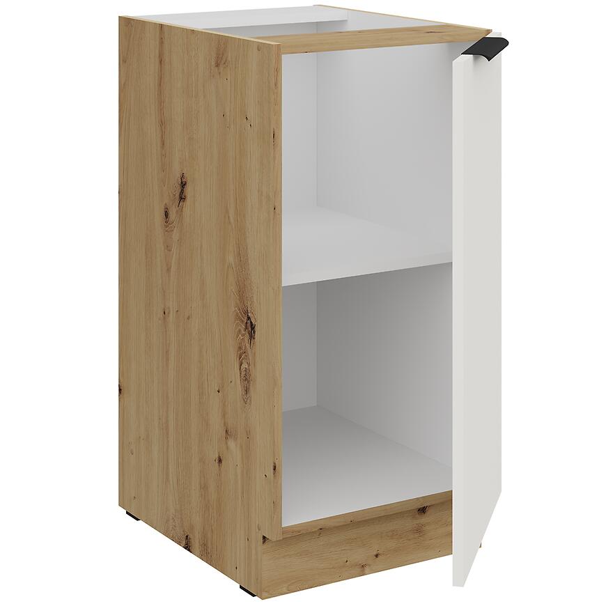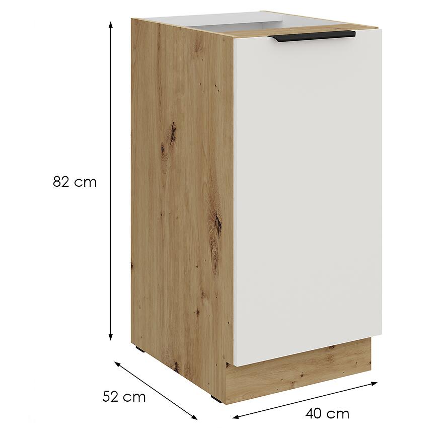 Szafka kuchenna Aria-Wh/Ar Anti Fingerprint 40d 1f Bb to funkcjonalna szafka dolna o wymiarach 82 × 40 × 52 cm, która łączy nowoczesny design z wygodą użytkowania. Fronty w kolorze crystal white wykonano z laminowanej płyty wiórowej z matowym wykończeniem, co zapewnia odporność na odciski palców i łatwość utrzymania w czystości.