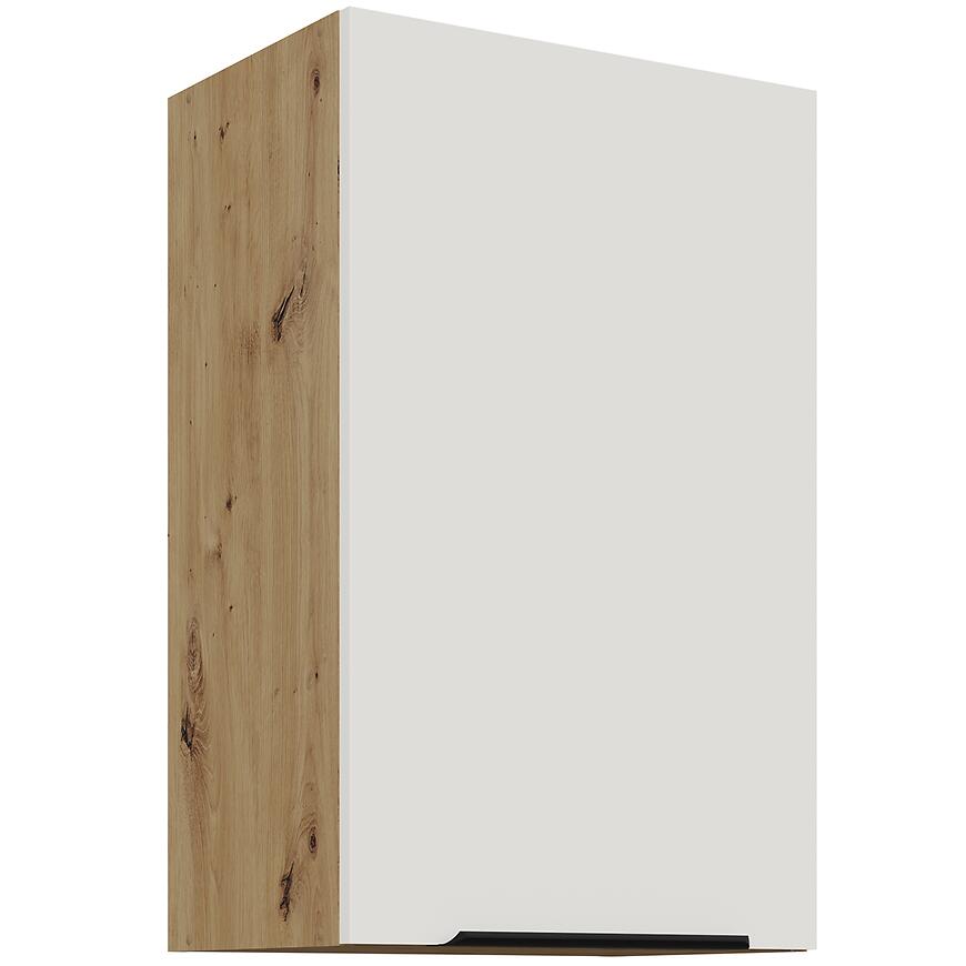 Szafki kuchenne górne z kolekcji Aria White to propozycja dla osób, które chcą stworzyć kuchnię o jasnym, harmonijnym wyglądzie i nowoczesnym wykończeniu. Zestawienie frontów Crystal White AFM z korpusem w dekorze dąb artisan pozwala uzyskać elegancką i uporządkowaną przestrzeń. Matowa powierzchnia frontów zapewnia subtelny, szlachetny efekt, który świetnie współgra z jasnym, drewnopodobnym wybarwieniem korpusu. To połączenie wyróżnia się lekkością wizualną, dzięki czemu kuchnia wygląda świeżo i nowocześnie.
