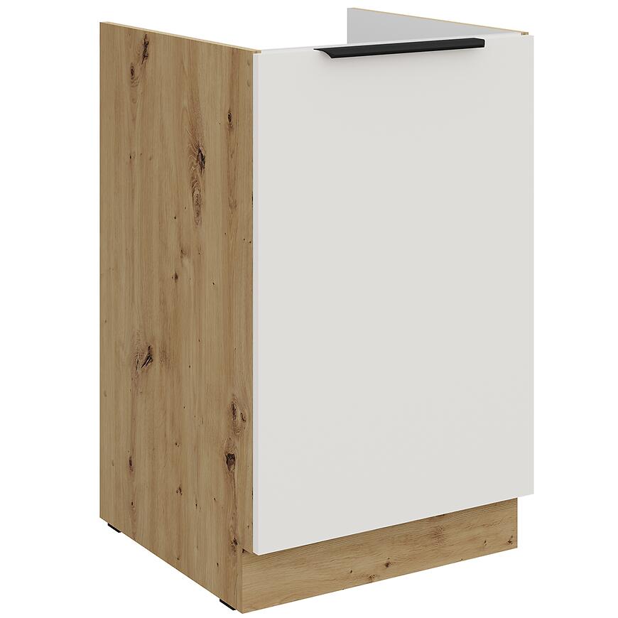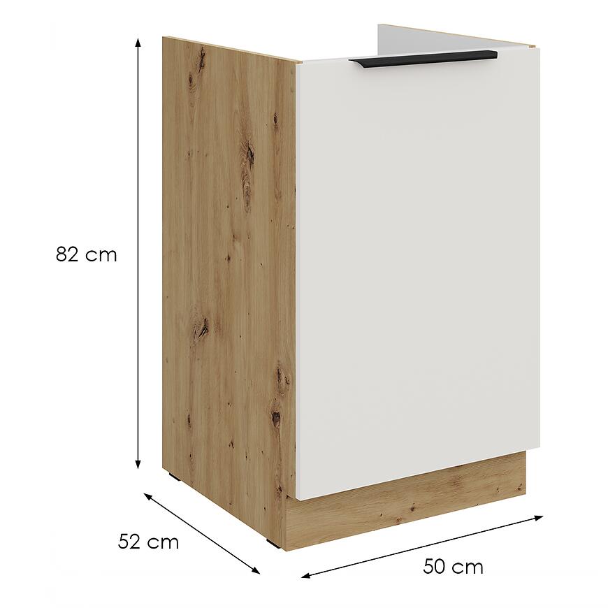 Szafka kuchenna Aria-Wh/Ar Anti Fingerprint 50zl 1f Bb to praktyczna szafka dolna o wymiarach 82 × 50 × 52 cm, łącząca nowoczesny design z wygodą użytkowania. Fronty w kolorze crystal white wykonano z laminowanej płyty wiórowej z matowym wykończeniem, co zapewnia odporność na odciski palców i łatwość utrzymania w czystości.